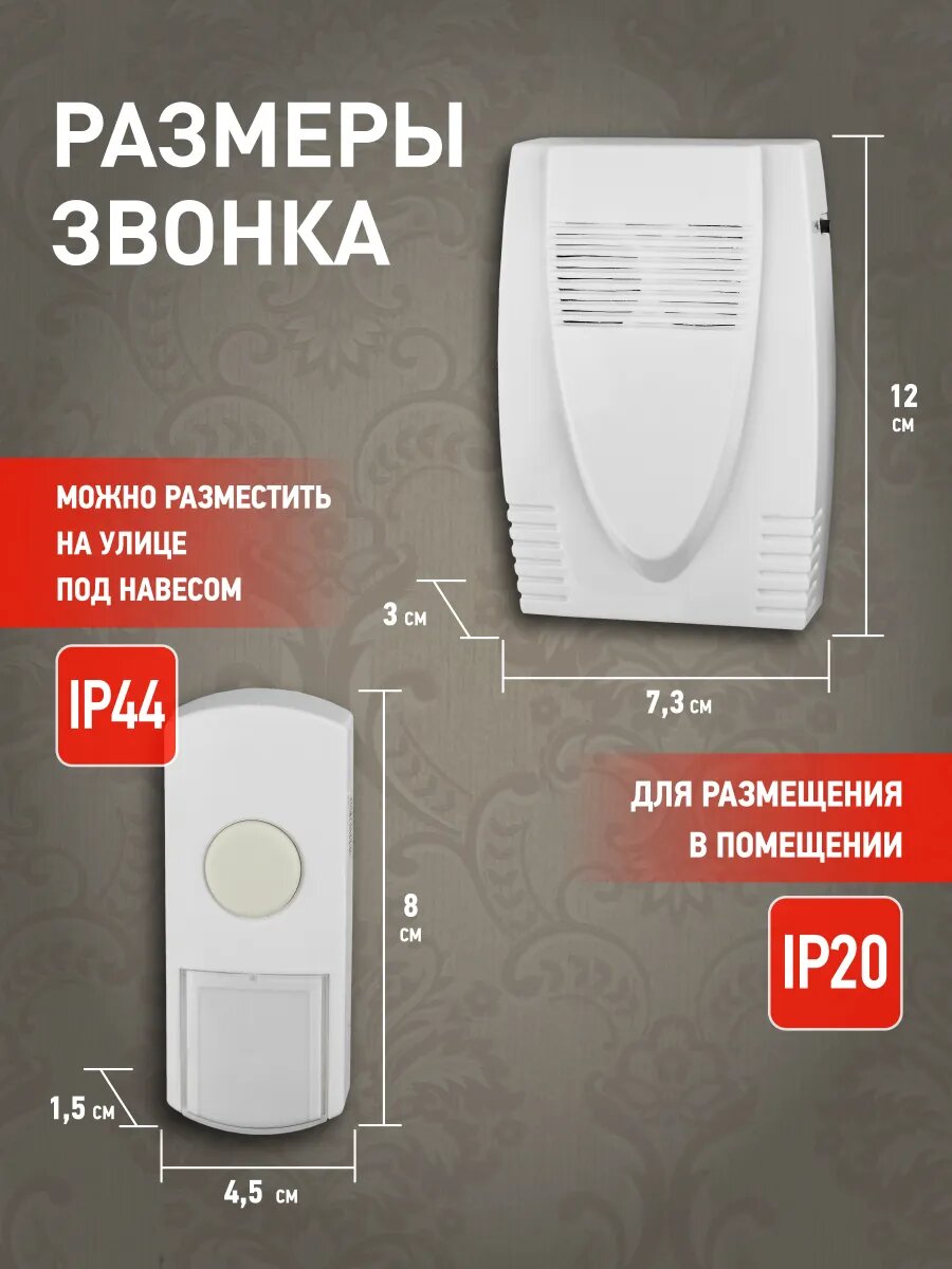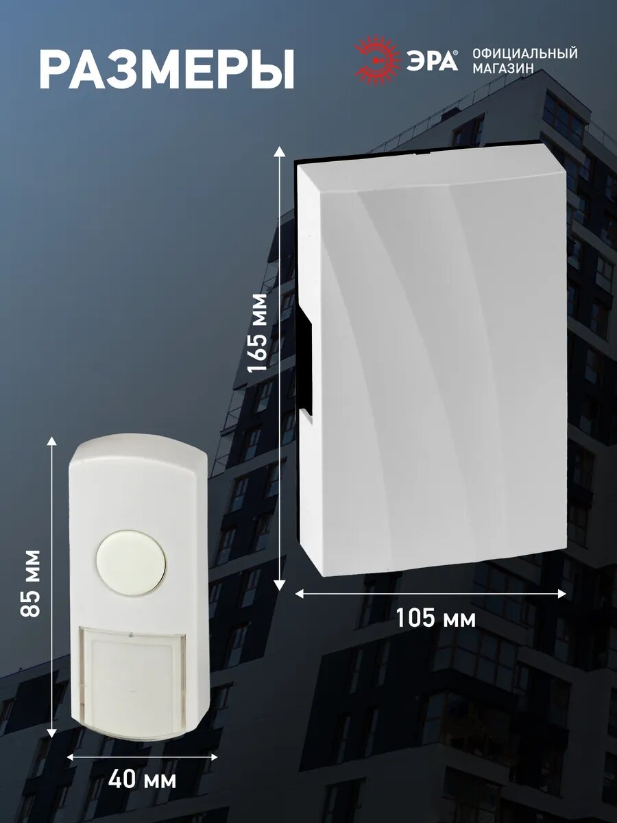 Звонок беспроводной дверной ЭРА C71 для квартиры и дома на батарейках влагозащищенный белый