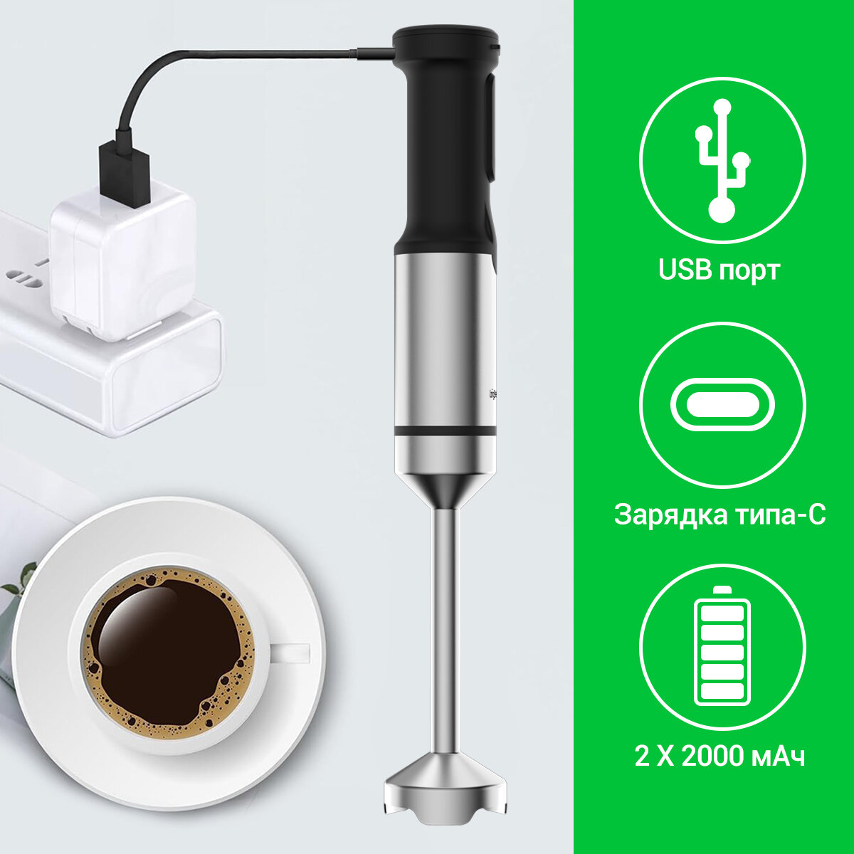 - Совместимость с Power Bank (5V/2A) позволяет использовать блендер автономно до 2 часов при наличии внешнего аккумулятора 10,000 mAh