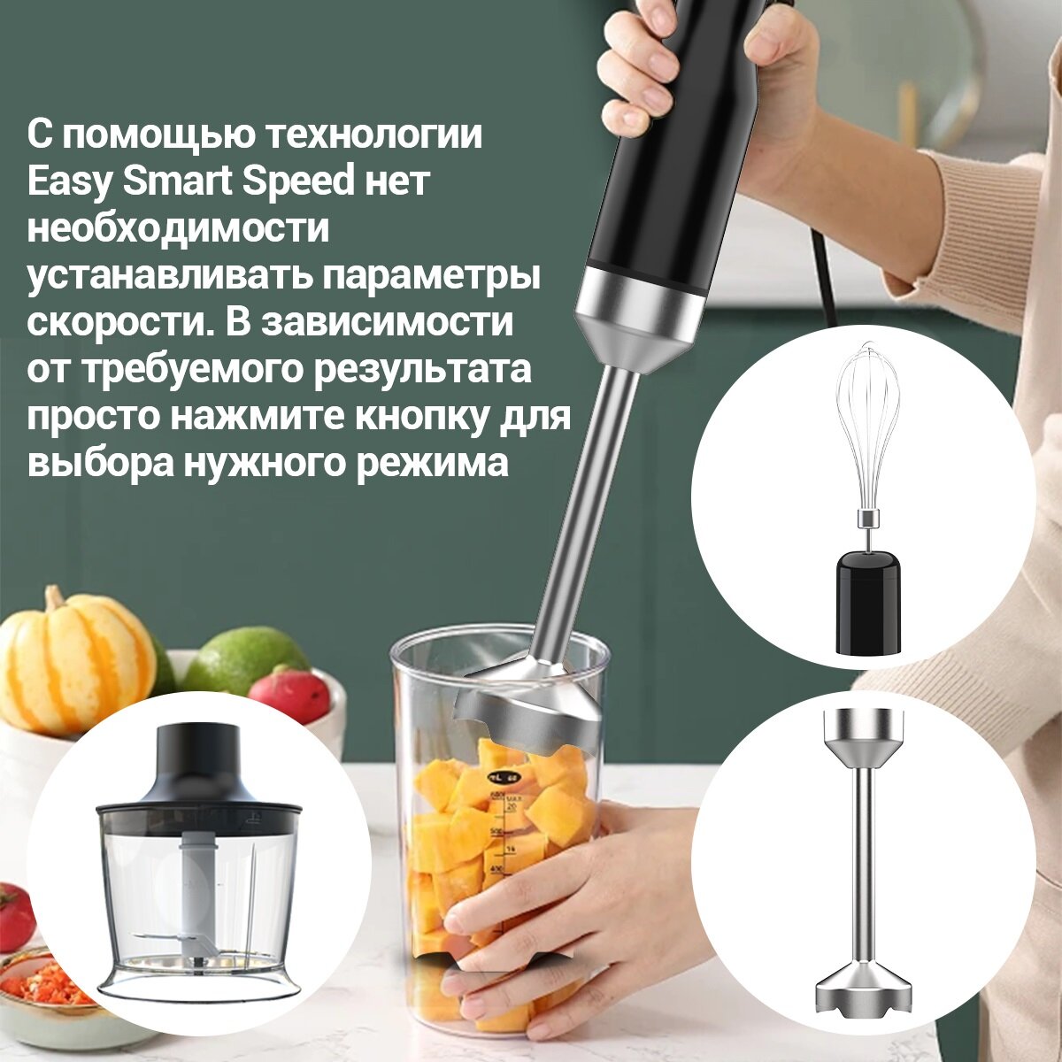 Диаметр основания 12 см оптимален для большинства кастрюль и высоких стаканов. Реверсивная конструкция ножей обеспечивает равномерное измельчение без "мертвых зон" — боль при обработке малых объемов (менее 200 мл).
