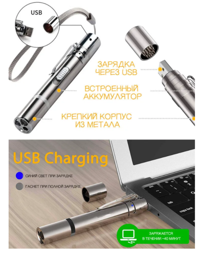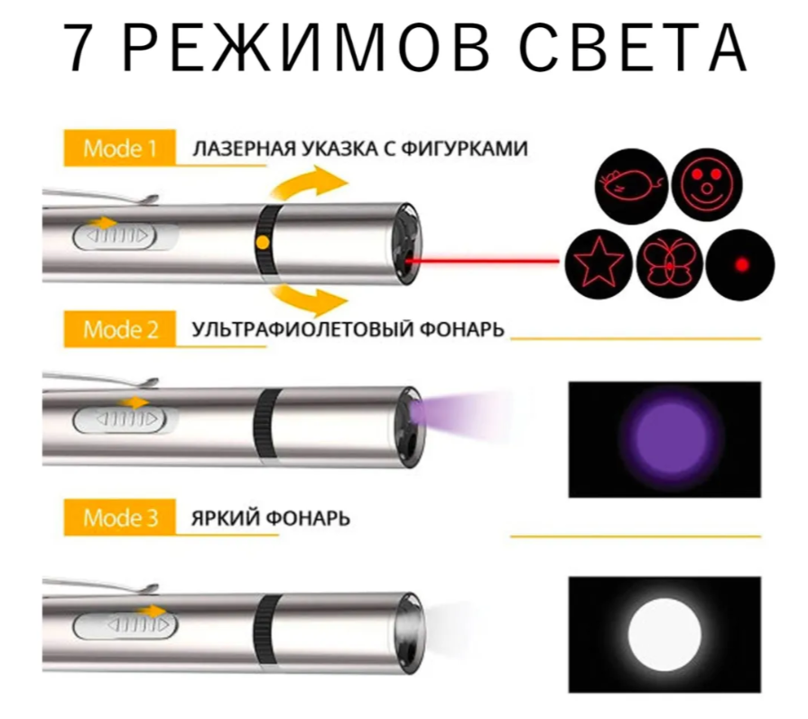 Мультифункциональная лазерная указка 7 в 1 для питомцев с аккумулятором USB-C