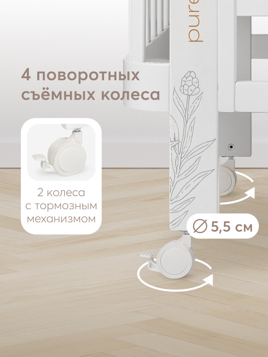 - Классическая кроватка с опускающейся стенкой (3 положения фиксации)