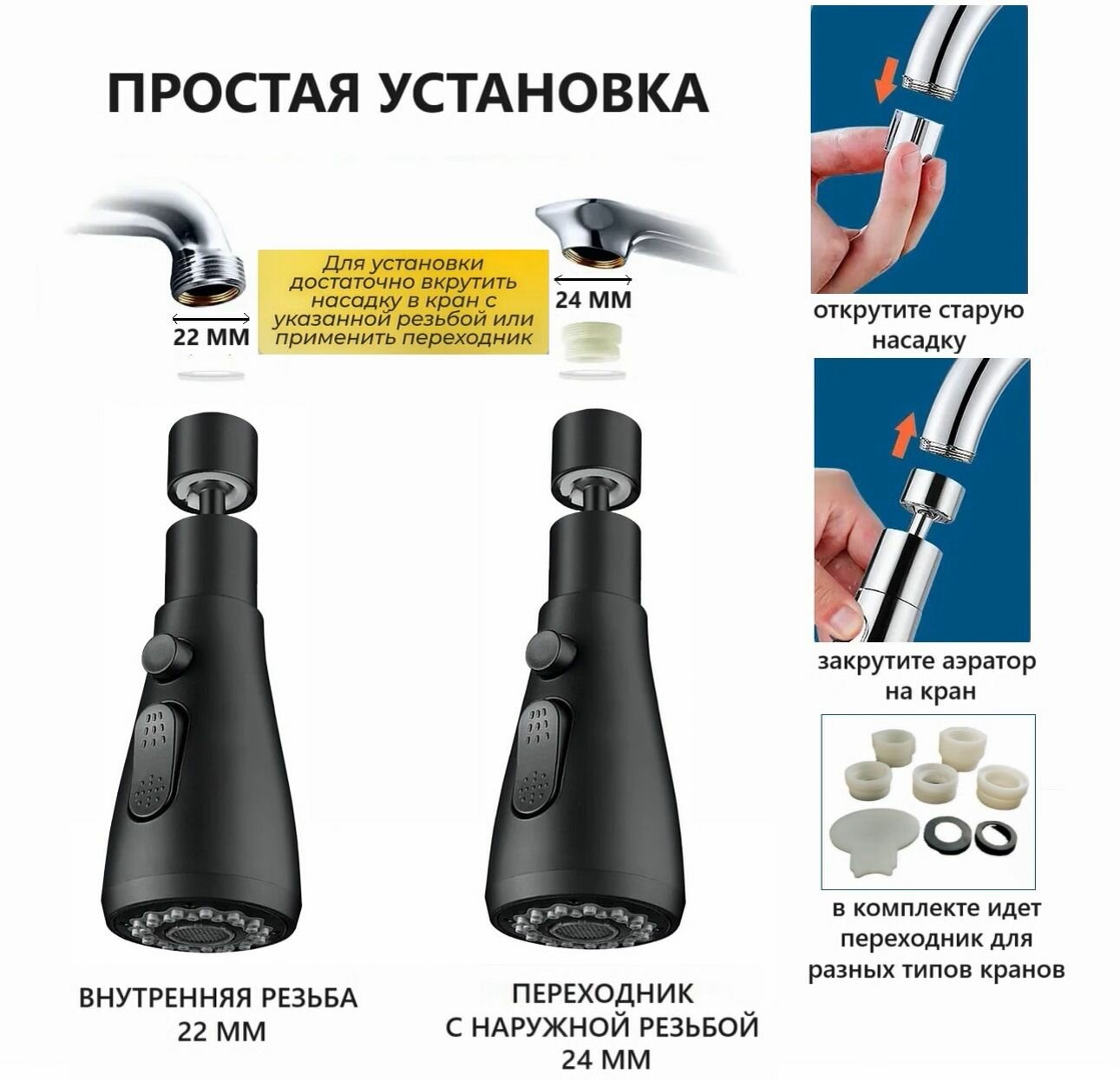 Вращающийся аэратор для смесителя с 3 режимами: инновация подачи воды