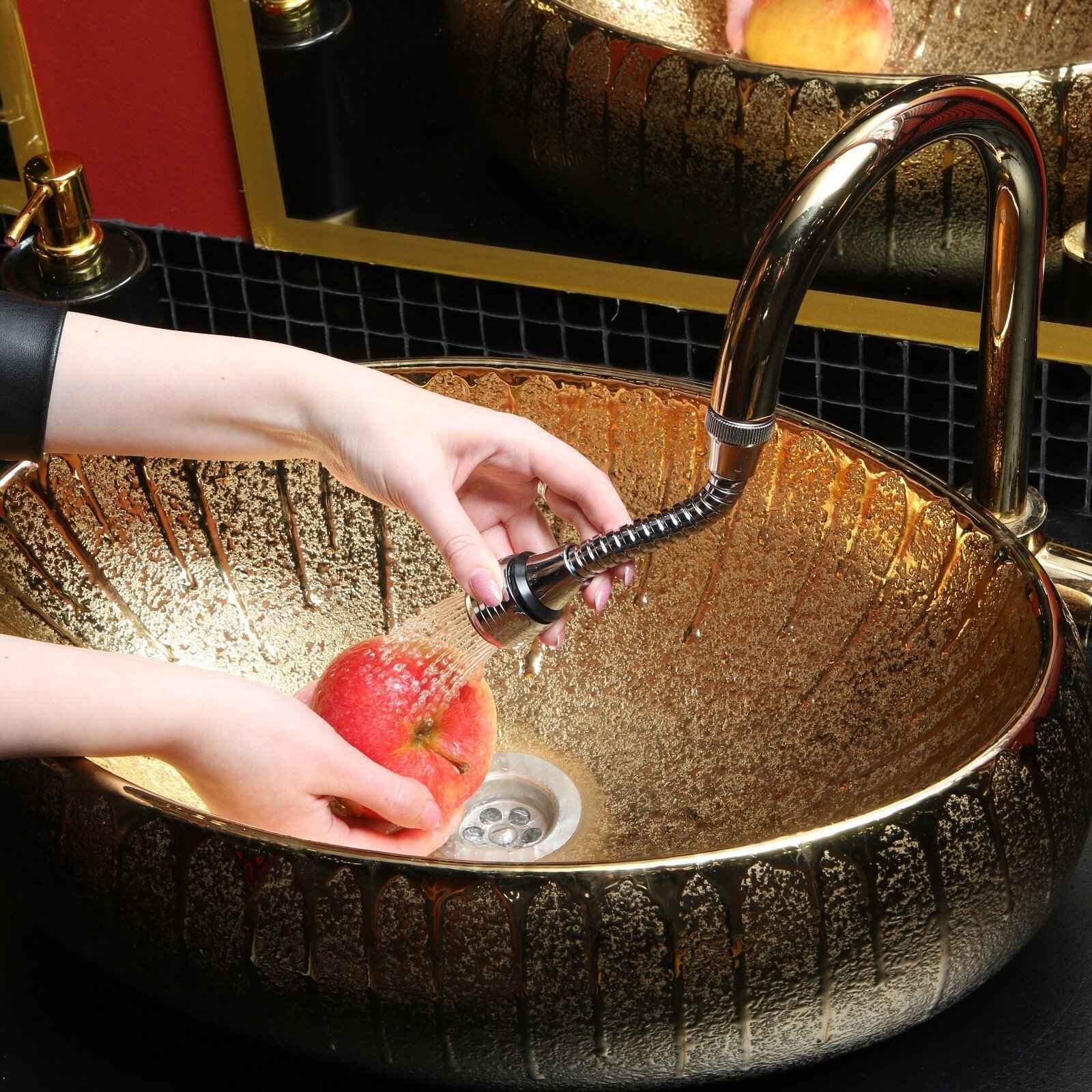 Гибкий шланг 160 мм из термостойкого каучука обеспечивает подвижность излива. В отличие от статичных моделей, ZEIN позволяет направлять поток воды с отклонением до 120° — удобно мыть объемную посуду или края глубокой раковины. Резиновая трубка сохраняет эластичность при температурах от -15°C до +90°C.