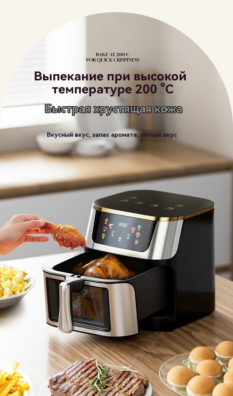 Xiaomi Air Fryer оснащен нагревательным элементом 1500 Вт, что обеспечивает быстрый разогрев до 200°C за 3 минуты. Диапазон регулировки температур (80-200°C) охватывает основные задачи: