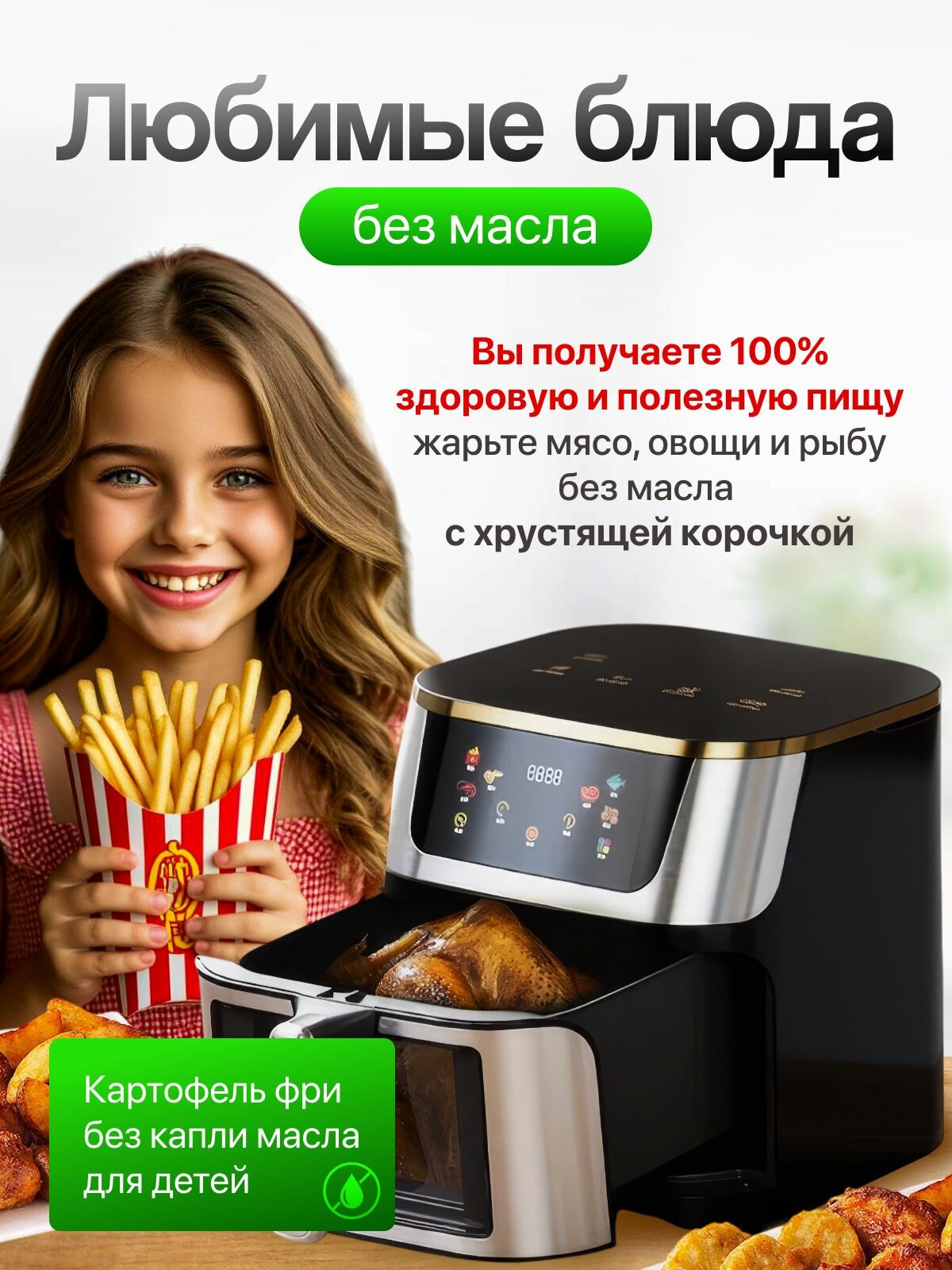 Аэрогриль Xiaomi матовый черный объединяет 15 автоматических программ для различных блюд: