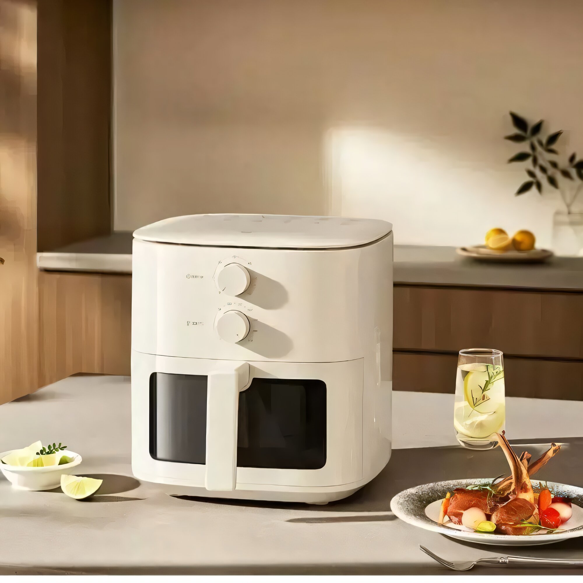 При мощности 1800 Вт Xiaomi Air Fryer N1 MAF11 готовит на 30% быстрее бюджетных моделей. Конвекционный нагрев распределяет тепло по 6.5-литровой корзине благодаря специальной перфорации. Крышка с электронным управлением позволяет устанавливать: