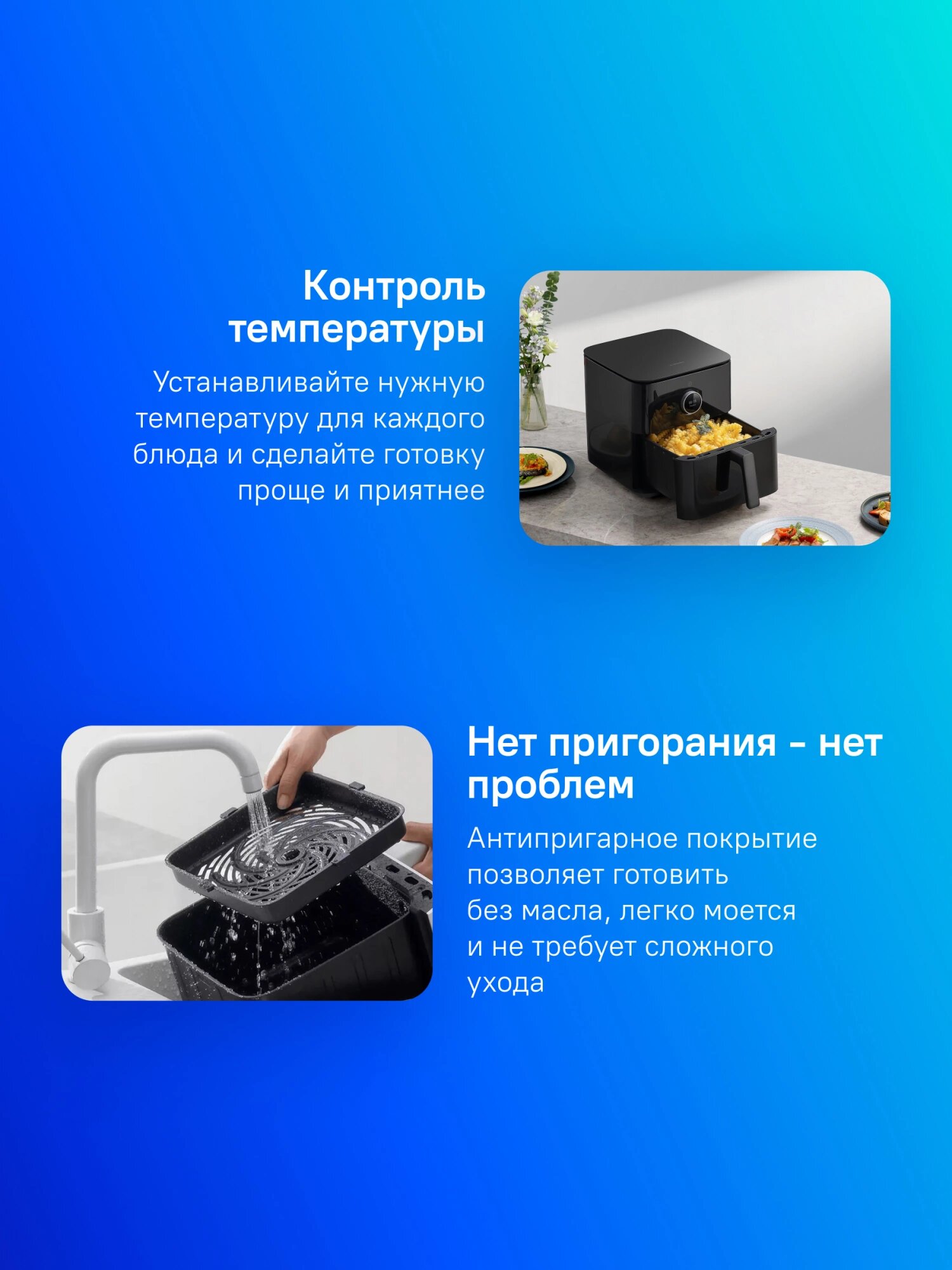 Аэрогриль Xiaomi 1800 Вт сокращает время приготовления на 30% по сравнению с бюджетными моделями. Технология Turbo Air обеспечивает циркуляцию горячего воздуха со скоростью 7 м/с - картофель фри готовится за 14 минут при 200°C. Предусмотрено 6 температурных режимов (60-200°C) с шагом регулировки 5 градусов для точного контроля результатов.