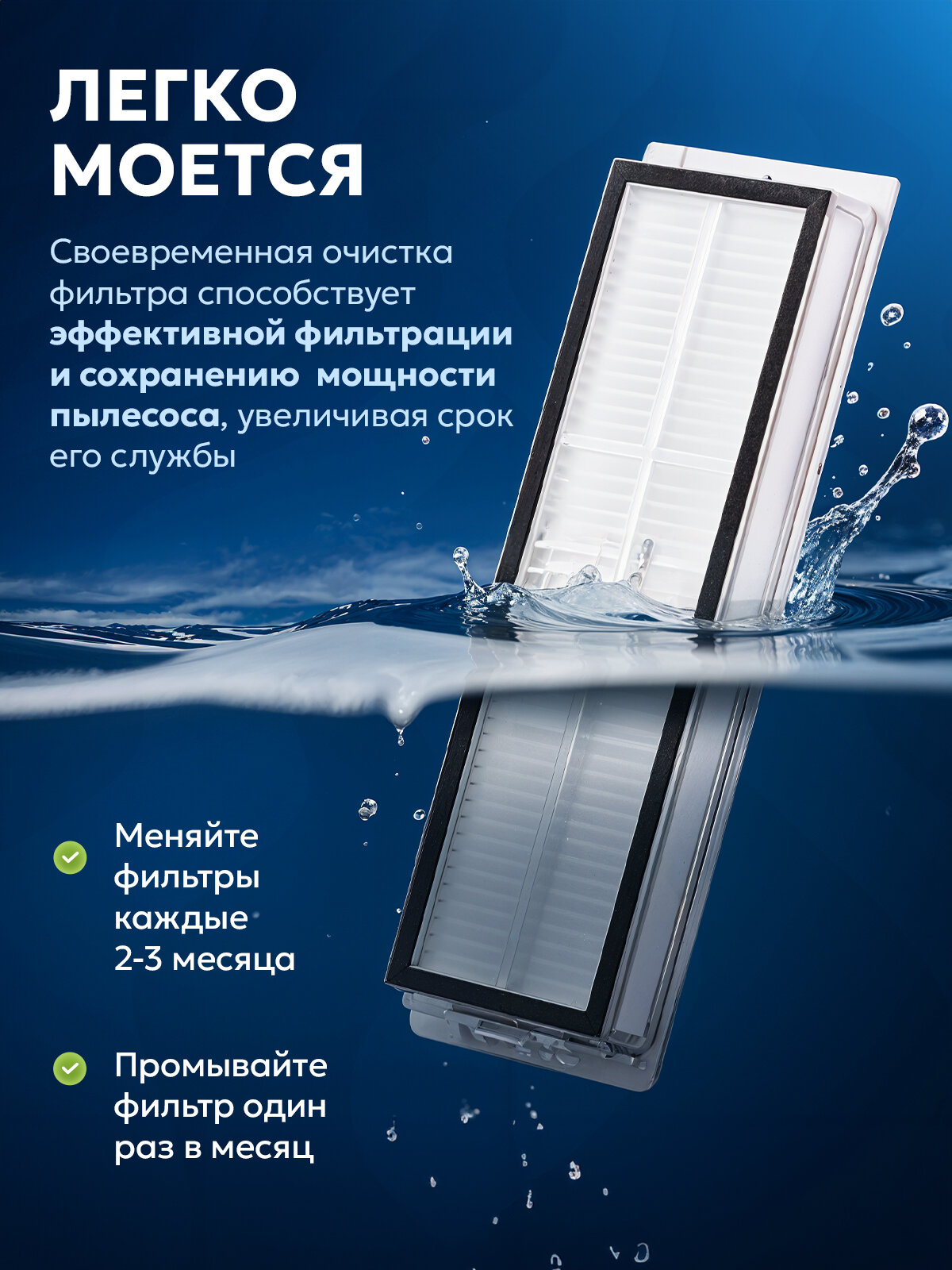- HEPA-фильтр H12 заменяйте каждые 3 месяца при уборке с животными