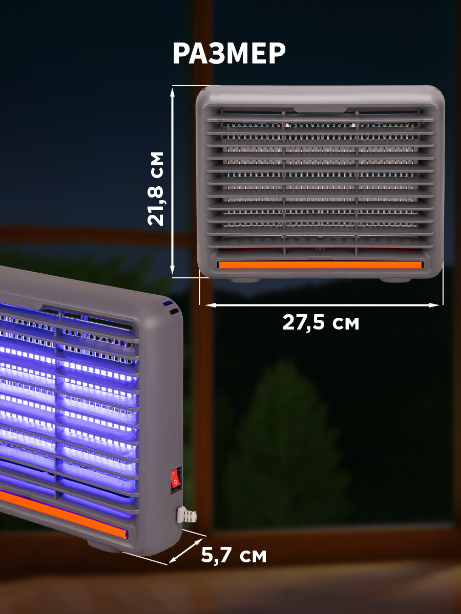 Электрическая антимоскитная лампа ЧЕТЫРЕ СЕЗОНА мощностью 3Вт работает по принципу привлечения насекомых ультрафиолетовым спектром с последующим их уничтожением контактной сеткой. В отличие от традиционных фумигаторов, устройство не выделяет химических паров: