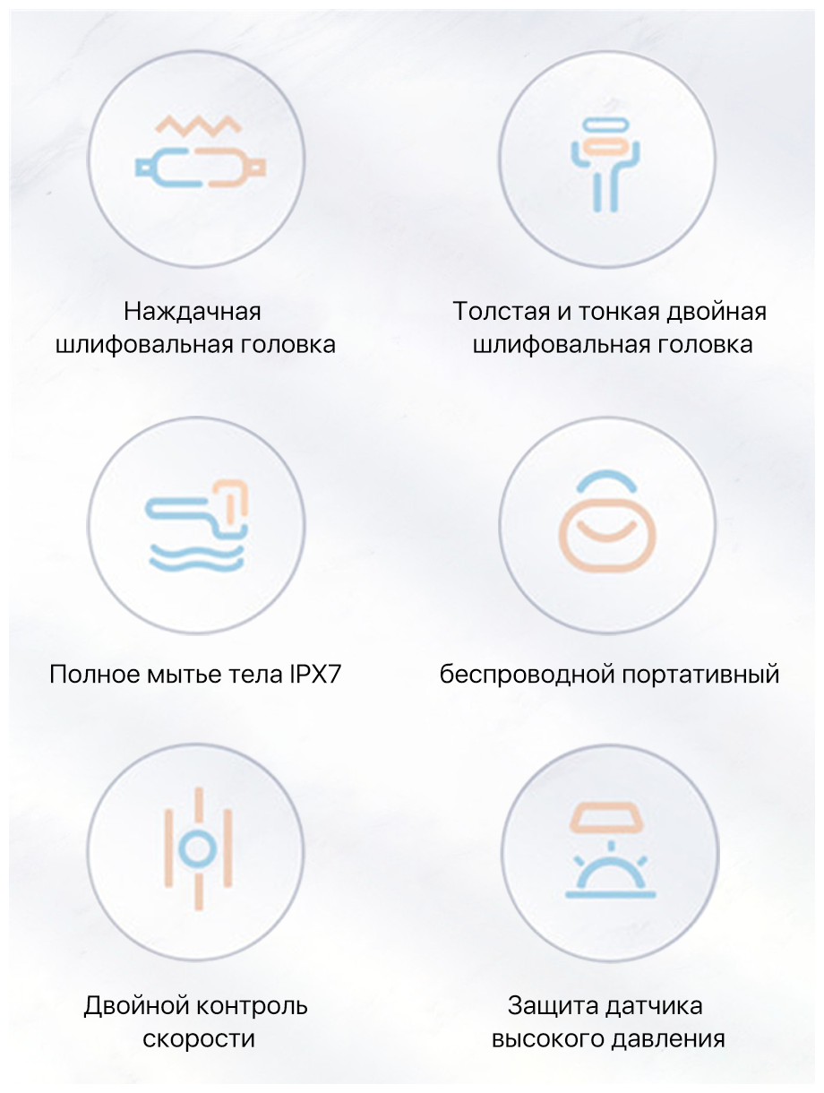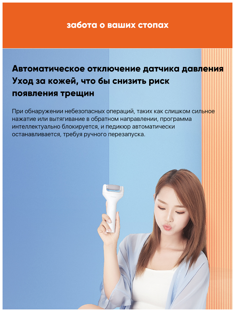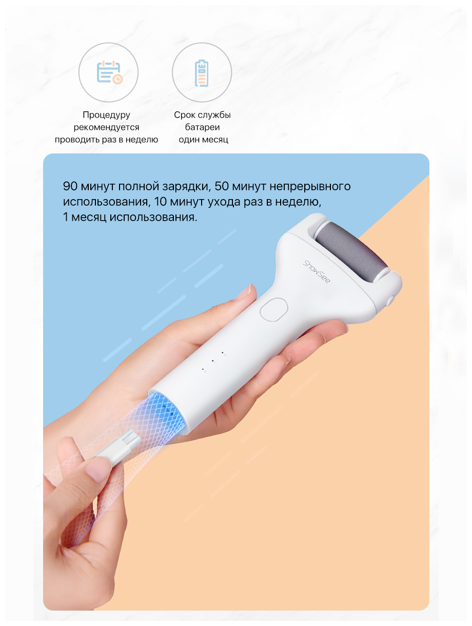 - Мощность 5 Вт обеспечивает стабильную работу при обработке огрубевшей кожи - в 1.5 раза эффективнее аналогов по цене до 2500₽