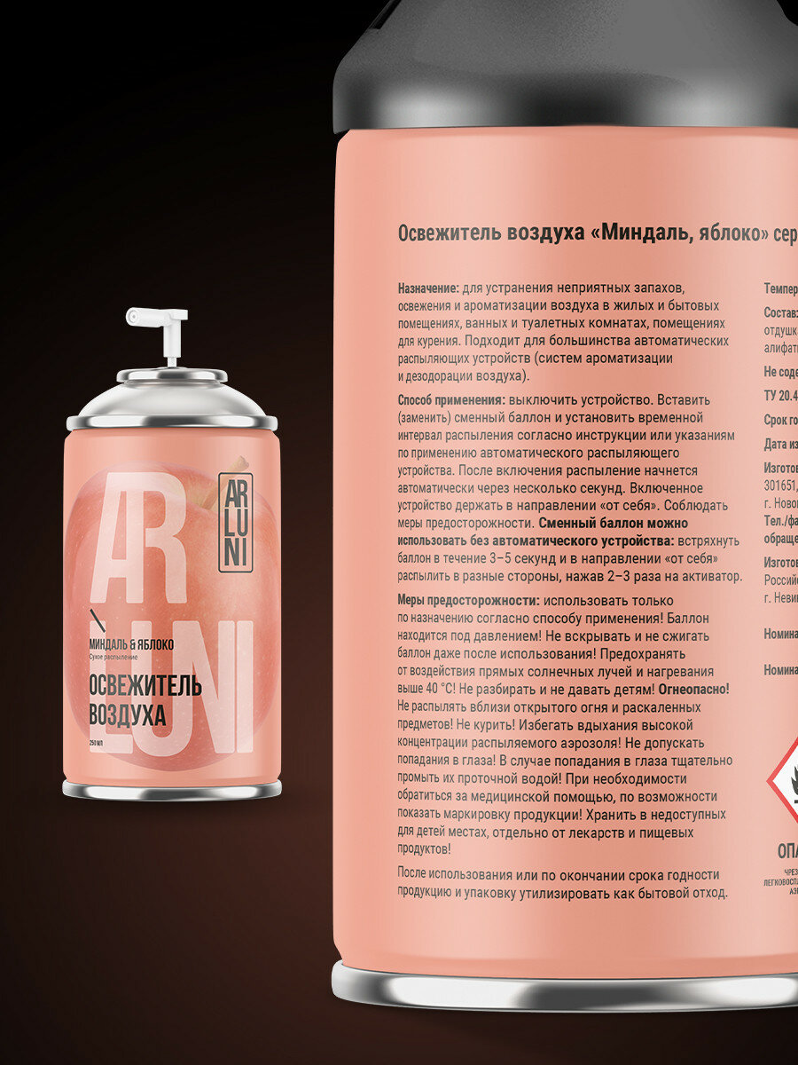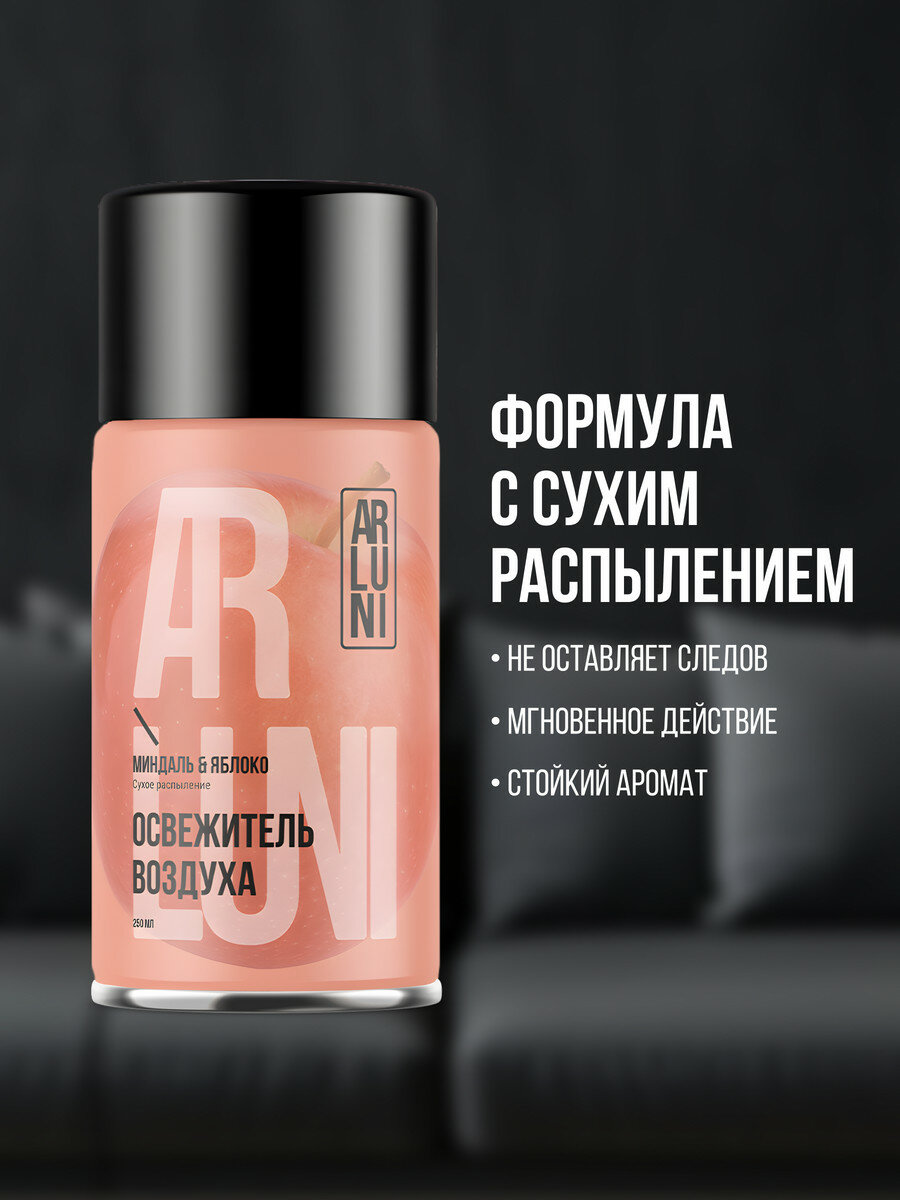 Освежитель Arluni сочетает экологичность и эффективность. Формула содержит натуральный спирт, который полностью испаряется за 2 минуты после распыления. Тестирование в лаборатории SAFE HOME подтвердило: