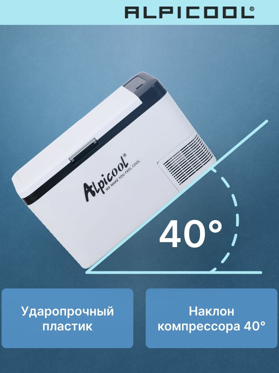 Alpicool K25 — компактный компрессорный холодильник для автомобиля с вместимостью 25 литров и профессиональными характеристиками. Устройство обеспечивает стабильное охлаждение до -20°C и работает от четырех источников питания: автомобильного прикуривателя (12В/24В), бытовой сети (220В) и портативных power bank. Модель превосходит термоэлектрические аналоги по скорости охлаждения на 65%.