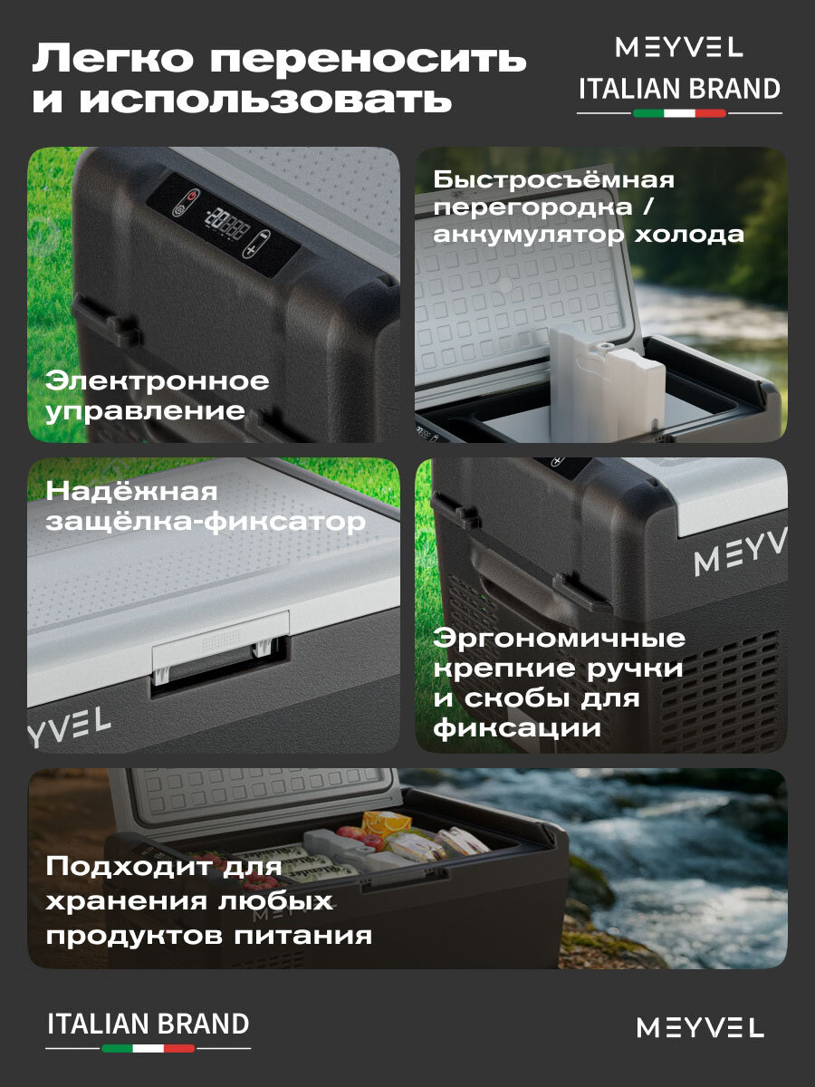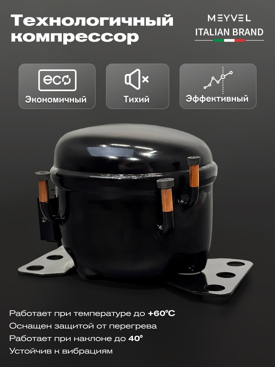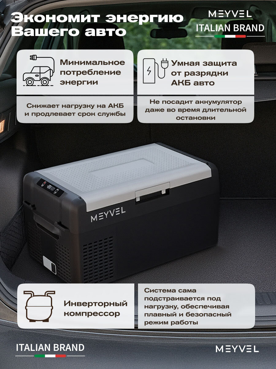 Автохолодильник Meyvel AF-L20 Ice использует компрессор закрытого типа для стабильного поддержания температуры до -20°C в любых условиях. В отличие от термоэлектрических моделей, компрессорный принцип обеспечивает: