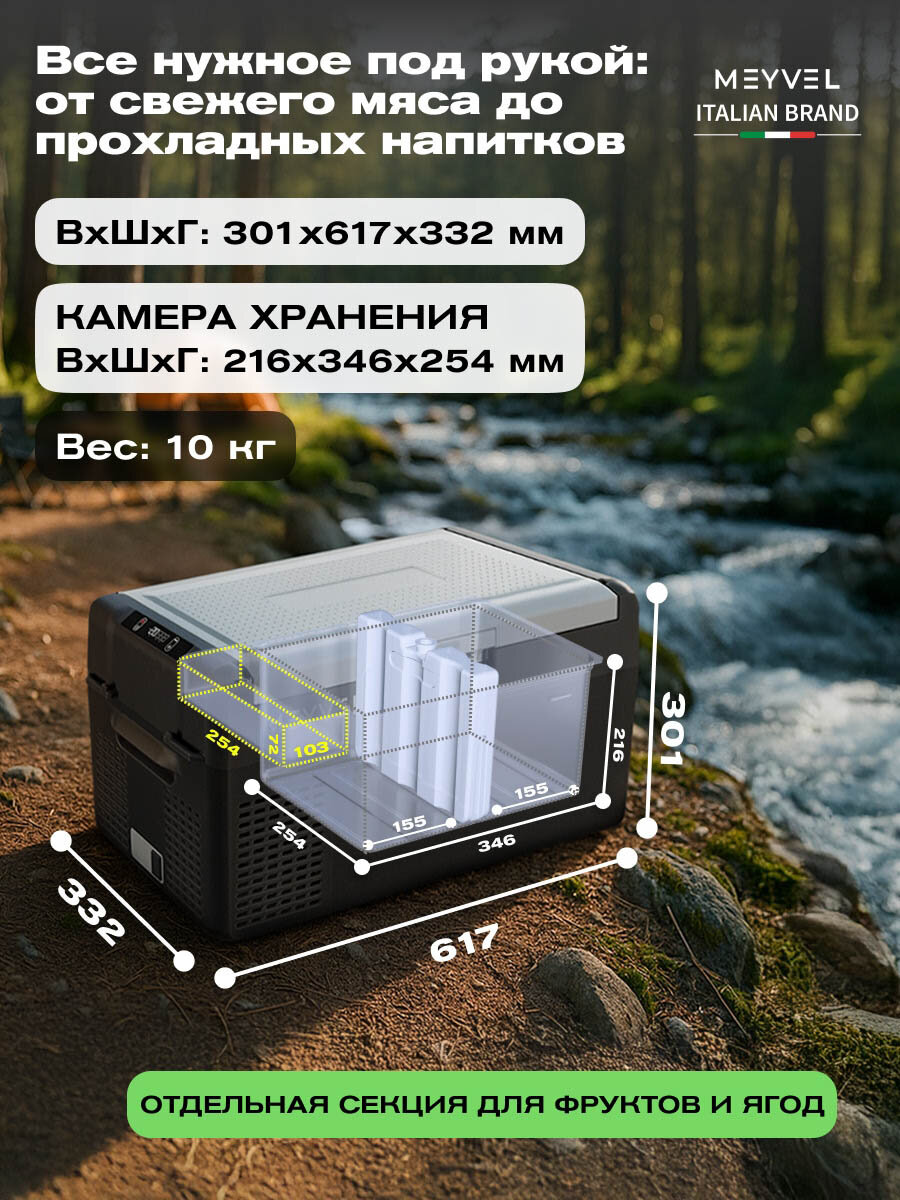 При высоте всего 30.1 см автохолодильник Meyer AF-L20 легко помещается: