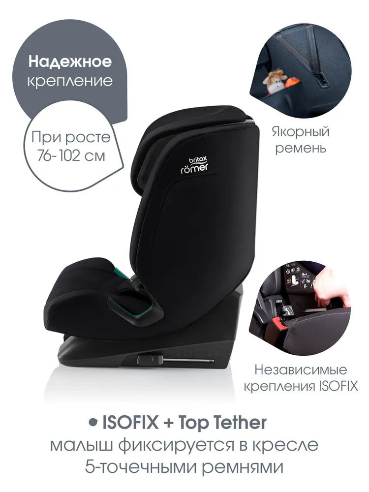 Автокресло Britax EVOLVAFIX Space Black обеспечивает комплексную защиту благодаря: