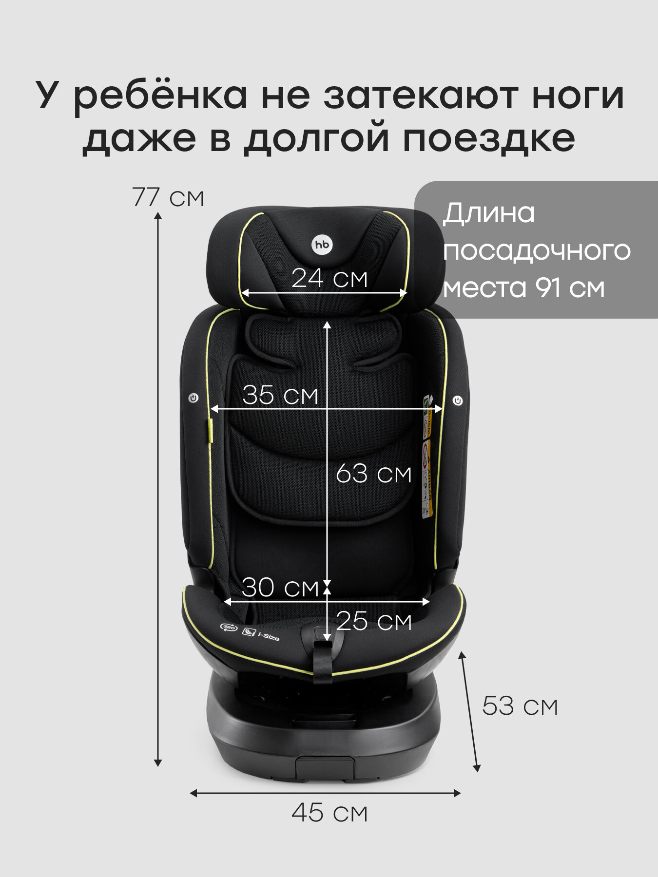 - Выдвижной удлинитель базы для установки на сидения глубиной до 62 см