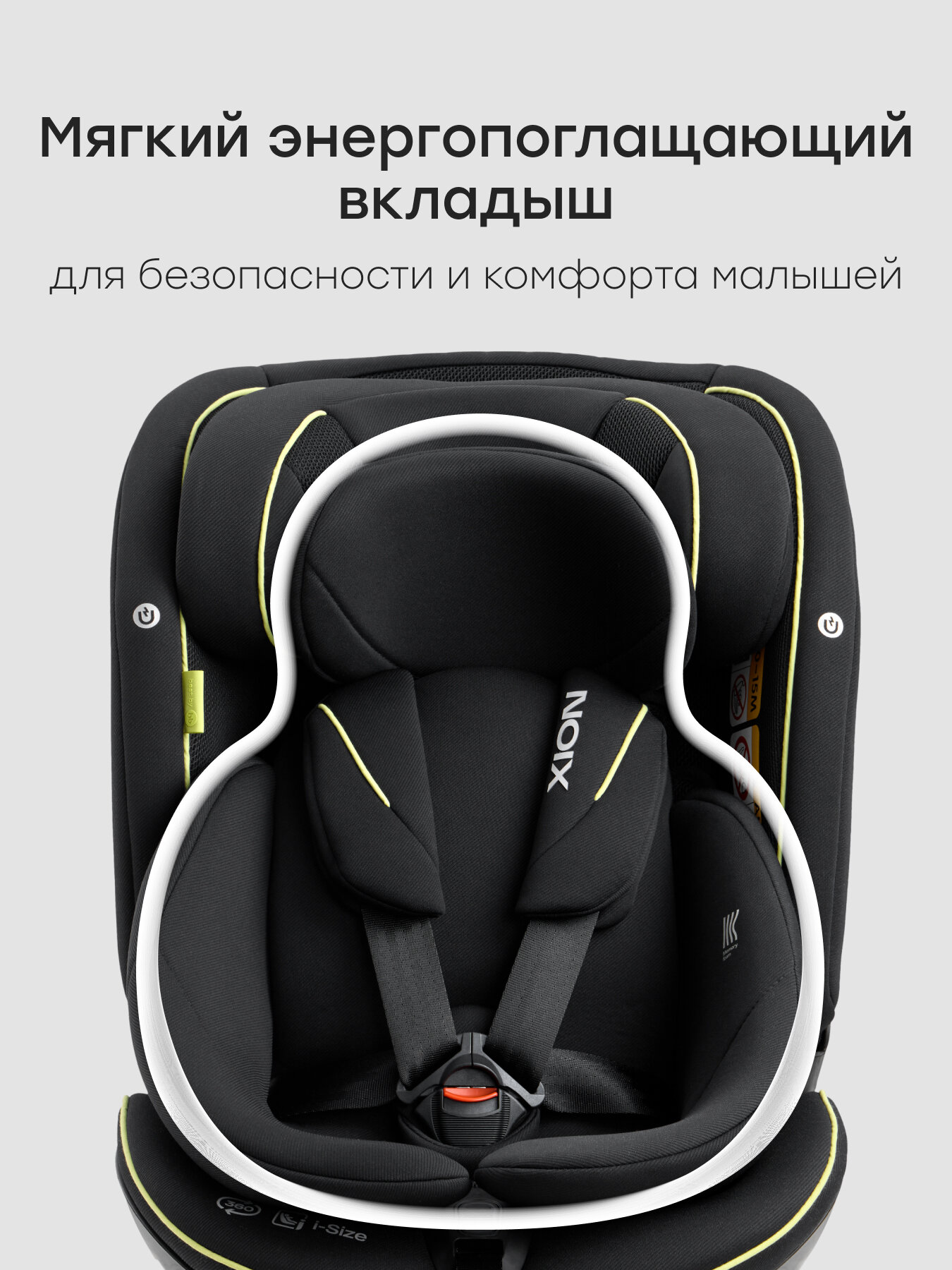 Конструкция соответствует международным стандартам i-Size (ECE R129) и российскому ГОСТ Р 41.44-2005. Защиту обеспечивают: