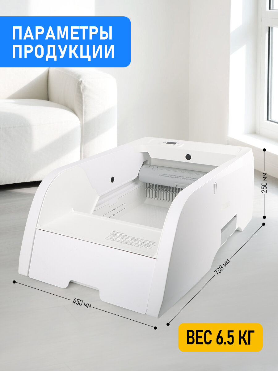 - Увеличенная емкость - обслуживает 3 кошек одновременно до 7 дней без замены пакета