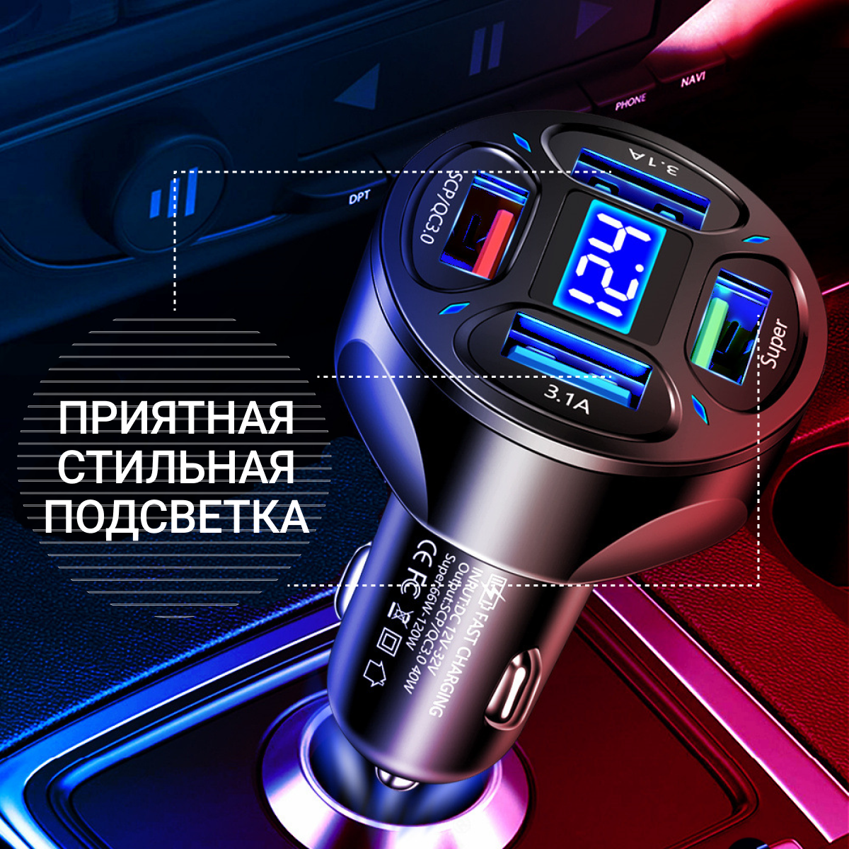 - Стабилизатор напряжения фильтрует помехи для FM-радио — критично для автомобилей без Bluetooth