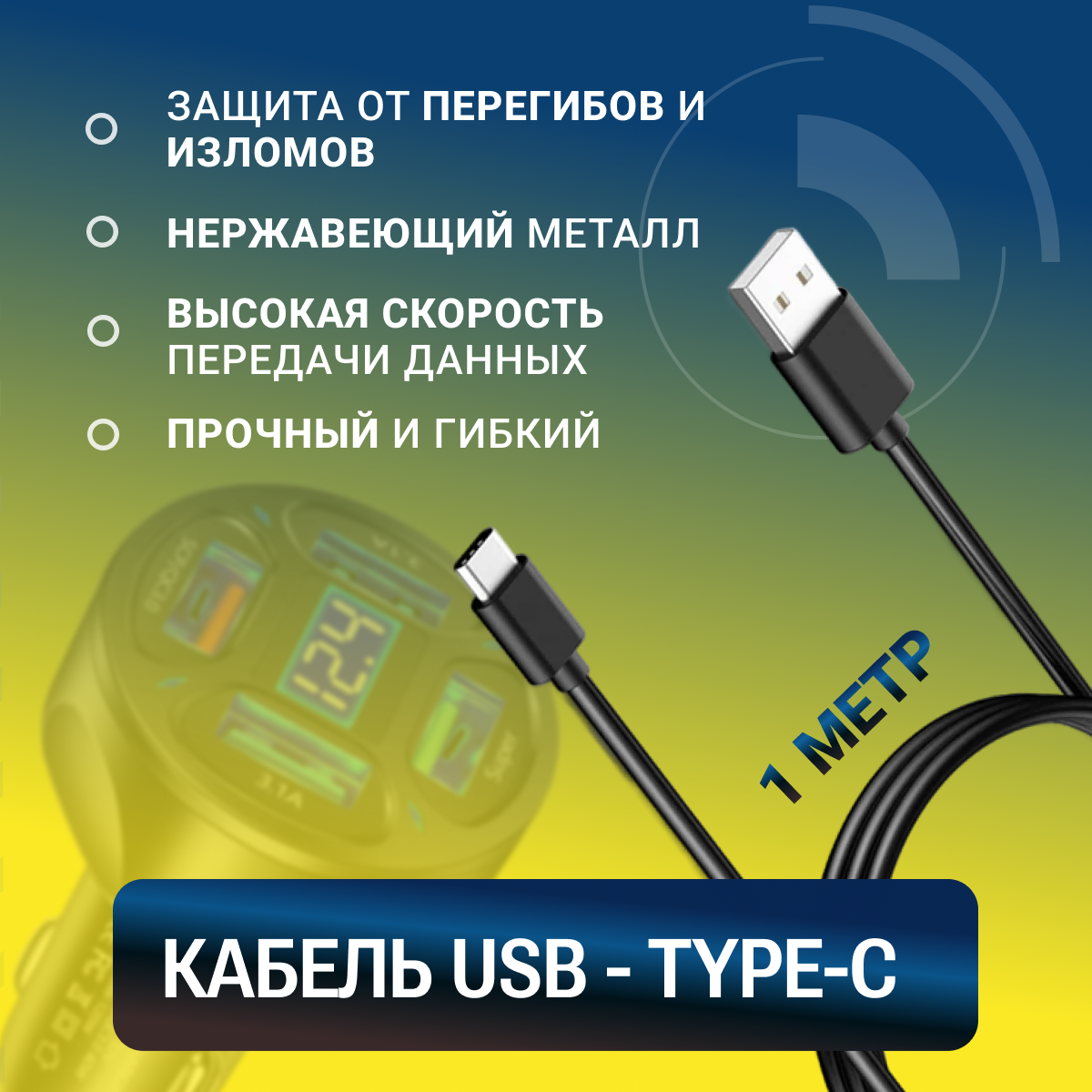 - Гибридный кабель Type-C длиной 1.2 м обеспечивает подключение к задним сиденьям автомобиля