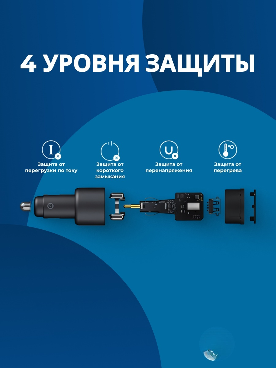 Зарядное устройство Xiaomi для прикуривателя сочетает мощь 100Вт через инновационный двухпортовый дизайн. Модель 1А1С предусматривает: