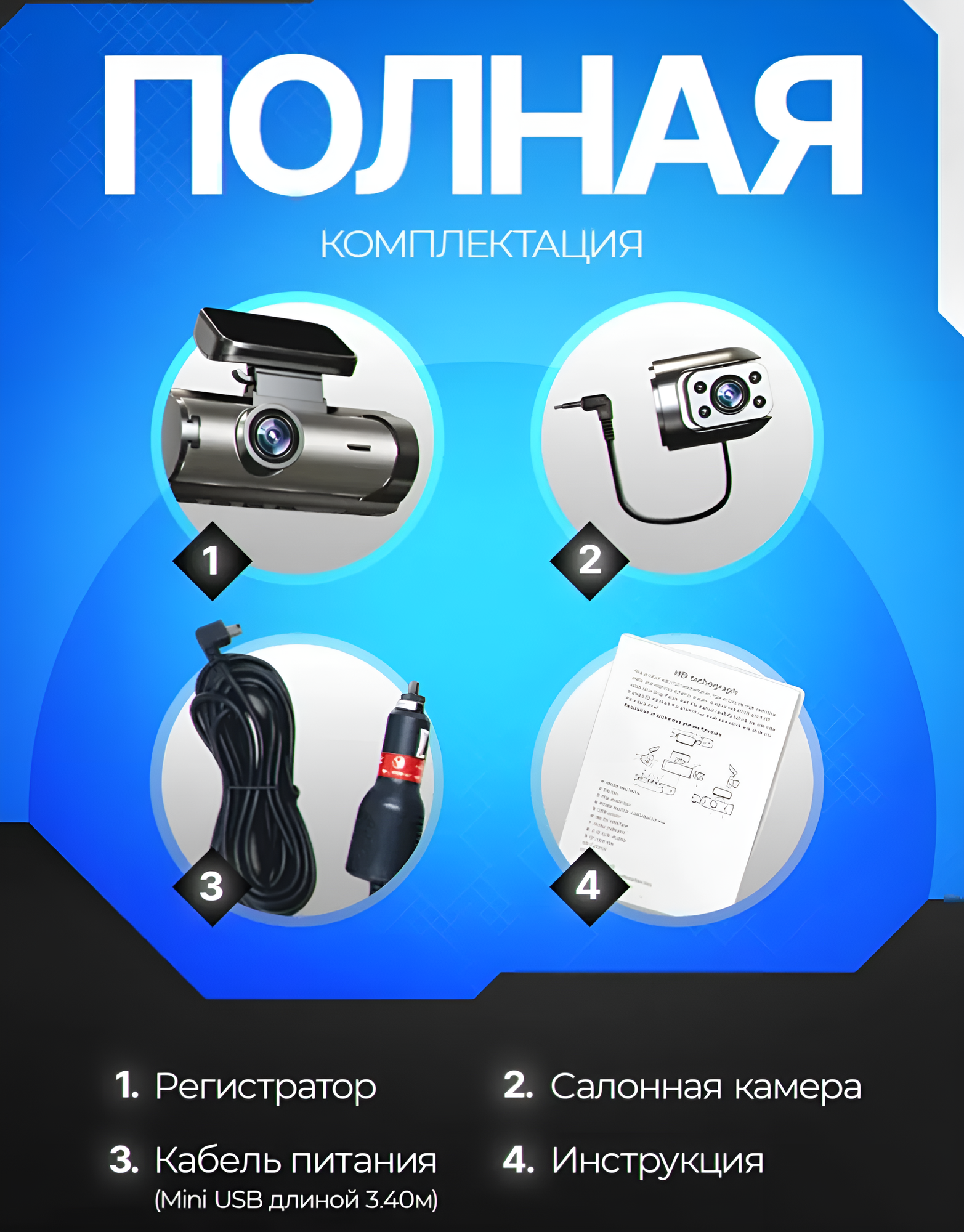 - Автомобильный кабель питания 3.5 м с контролем напряжения