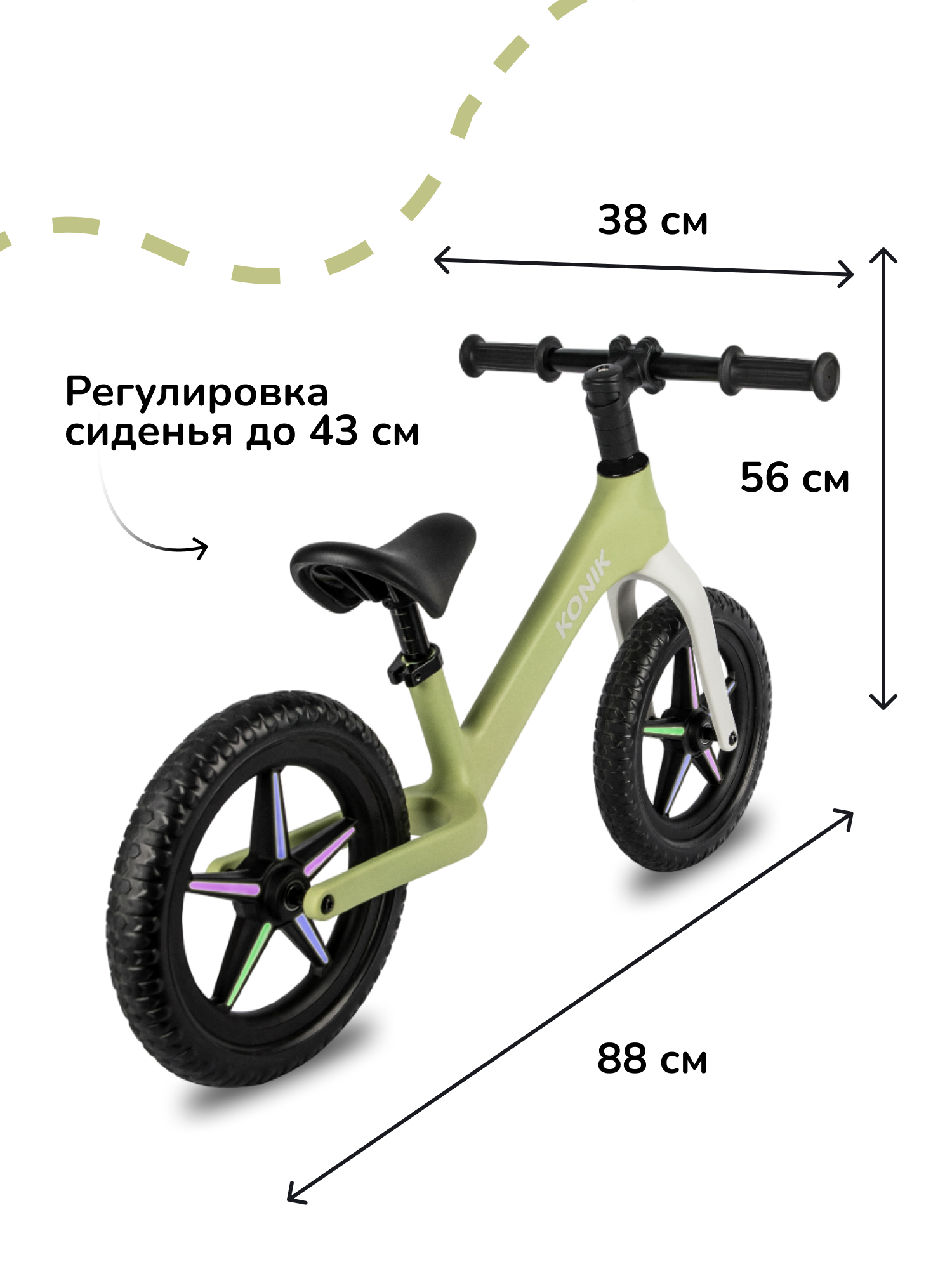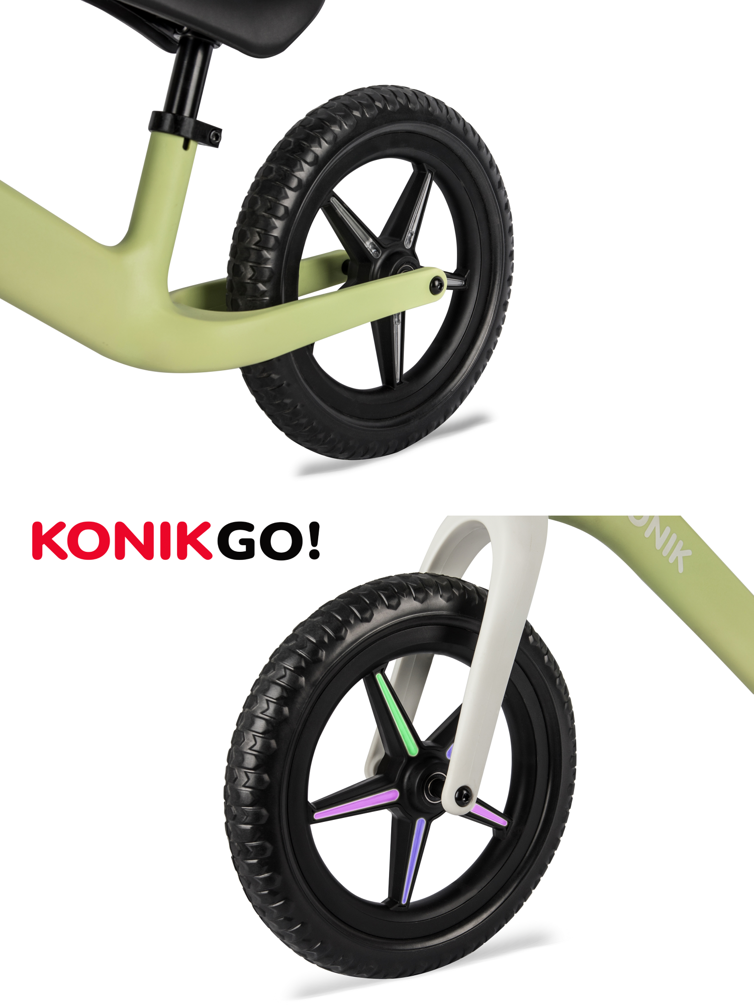 Беговел KONIK! с регулируемым сиденьем и светящимися колесами для детей от 2 лет