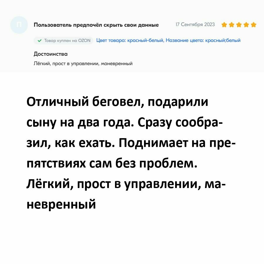 Стальная рама гарантирует долговечность даже при интенсивной эксплуатации. При весе в 3.4 кг беговел сочетает прочность и маневренность, что подтверждают тесты в немецком институте TÜV Rheinland.