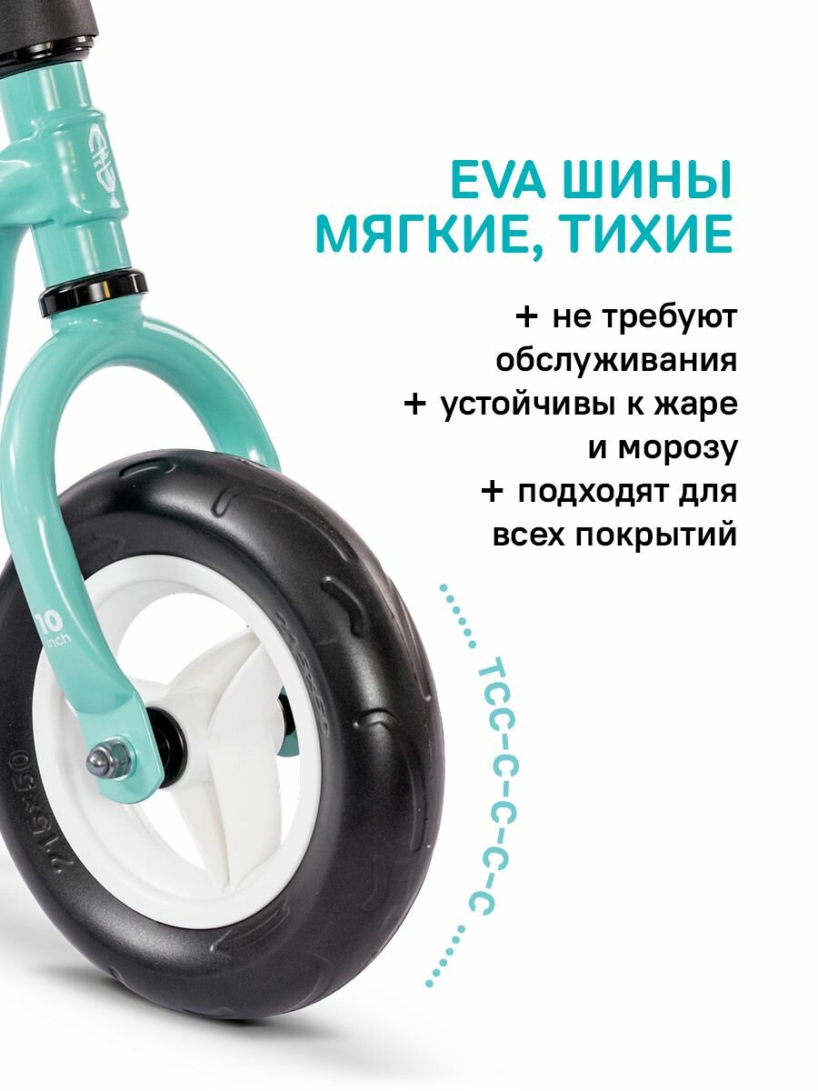 - Литые EVA-колеса 10" не нуждаются в подкачке