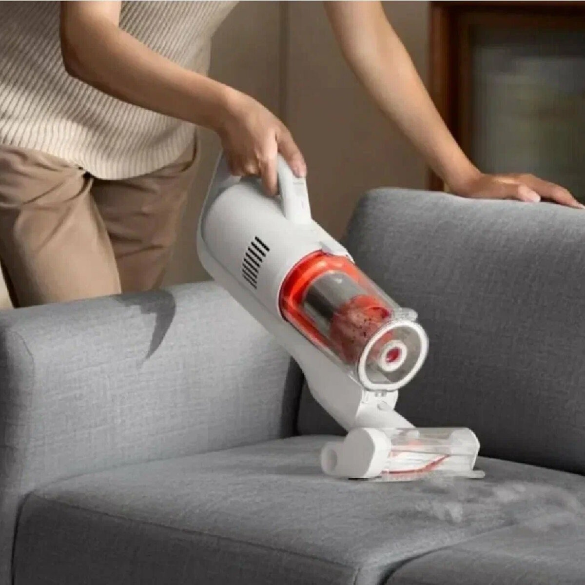 - Регулировка мощности на рукоятке – переключайте от щадящего режима для штор до турборежима для шерсти животных
