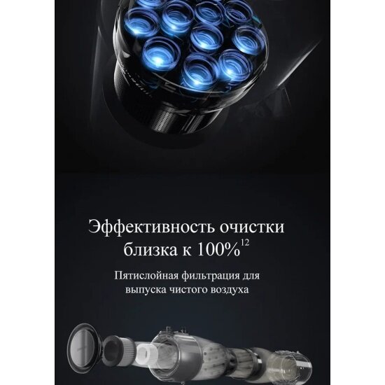 Мощность всасывания 150 Вт при потреблении 450 Вт обеспечивает глубокую очистку ворсовых покрытий. В тестах на ковролине устройство удаляет 98% загрязнений за 1 проход. Отличается от аналогов стабильной тягой благодаря безщеточному мотору и системе AirTech.