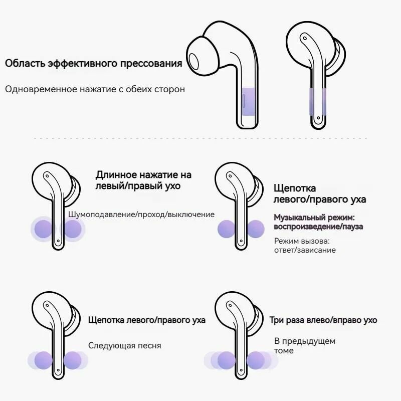 - 3 режима работы: активное шумоподавление/обычный/прозрачность. Переключение касанием