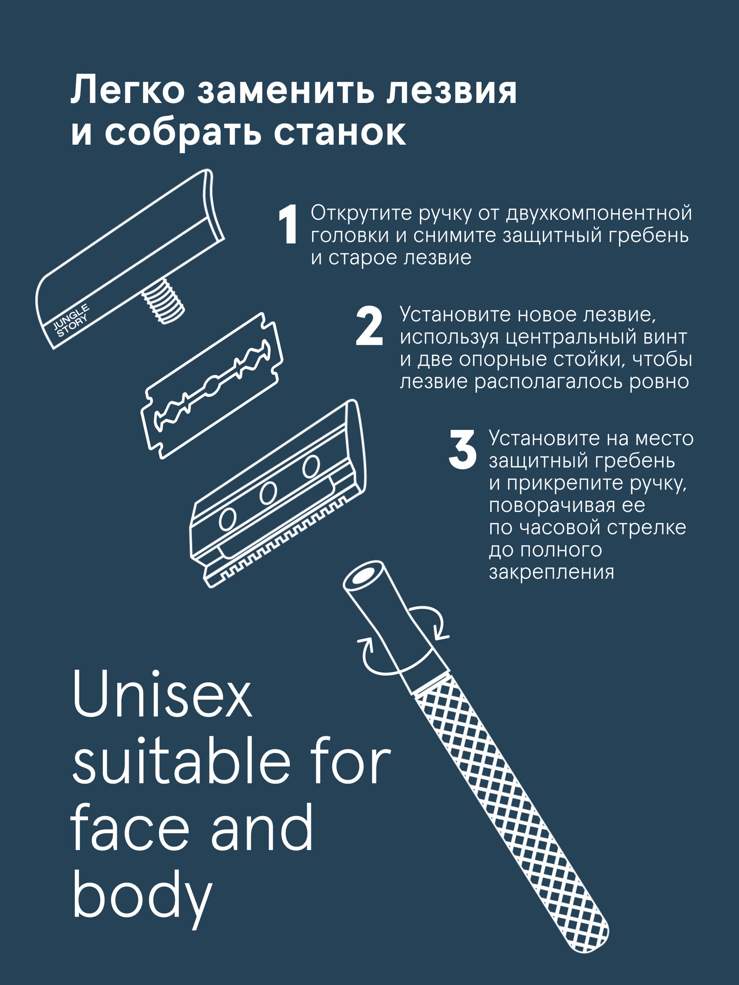 Т-образная конструкция станка разработана итальянскими инженерами для профессионального бритья. В отличие от одноразовых аналогов, металлическая основа из цинкового сплава выдерживает 500+ циклов использования. Особенности: