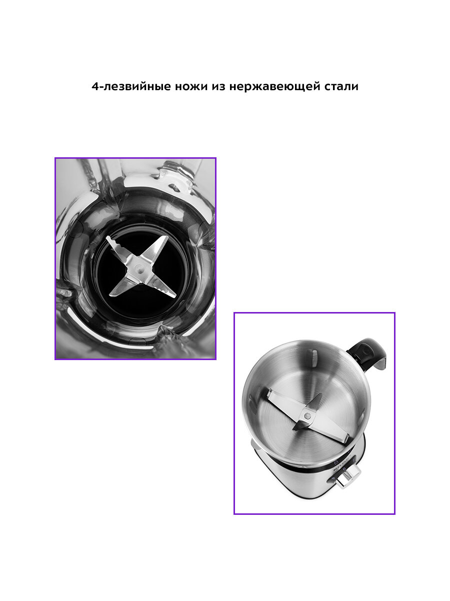 | Нож-крыльчатка | Приготовление крем-супов и коктейлей | 4 острых лезвия |