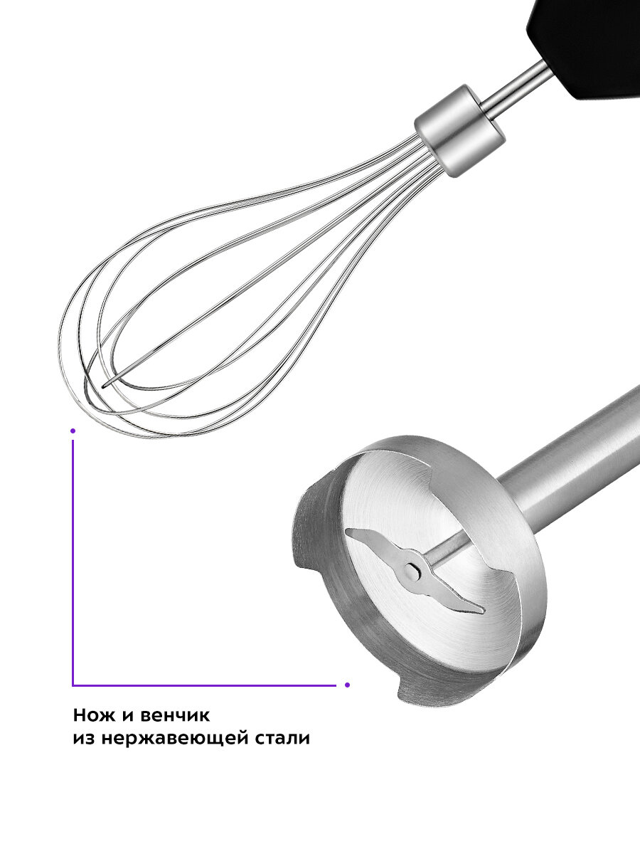 Металлическая погружная часть обеспечивает износостойкость при ежедневном использовании. В отличие от пластиковых аналогов как Polaris PHB 1048, конструкция KT-3052 выдерживает контакт с горячими супами температурой до 110°C без деформации.