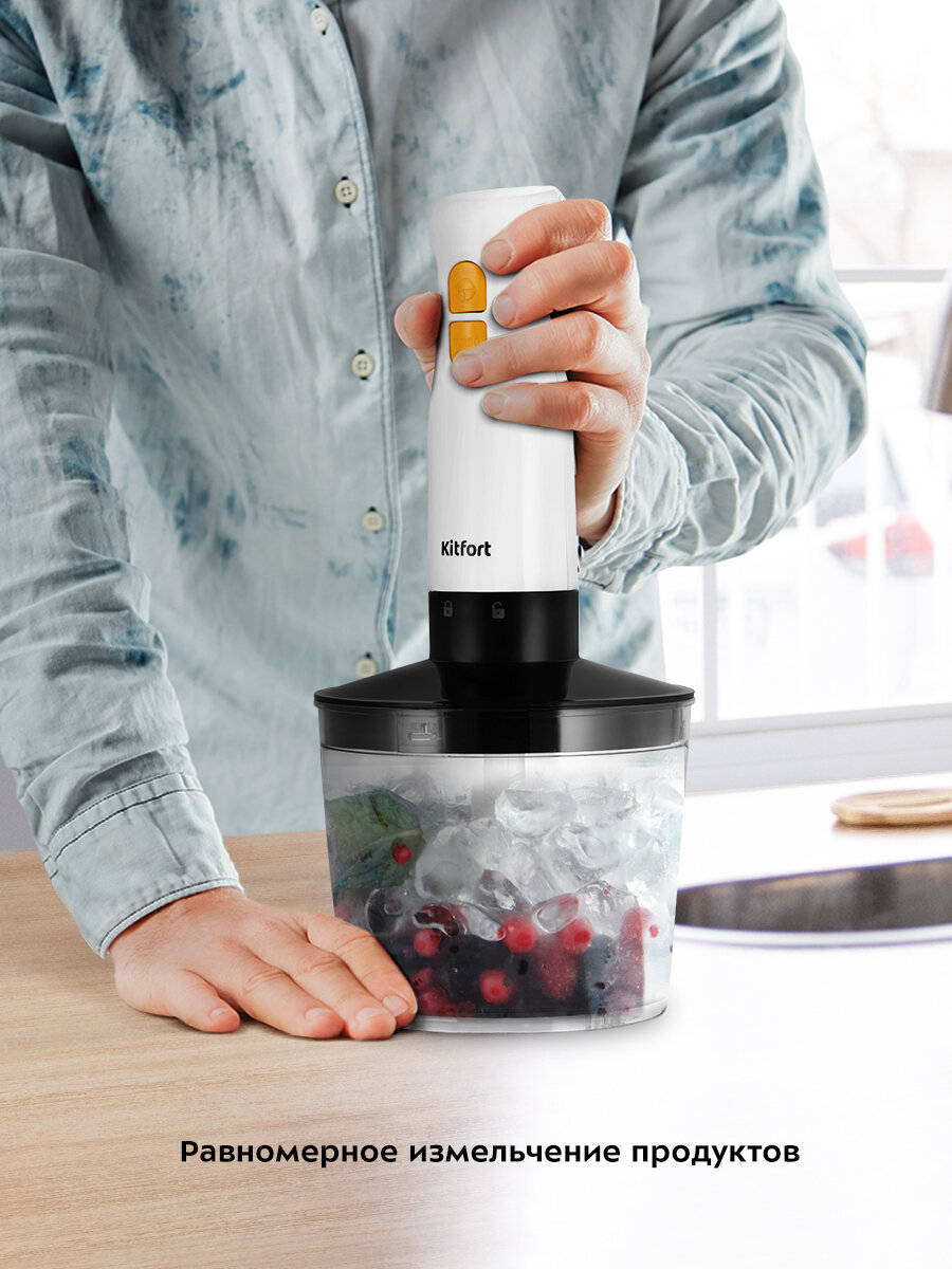 - Чаша 0.7 л со специальными рёбрами жесткости предотвращает опрокидывание при колке твёрдых продуктов.