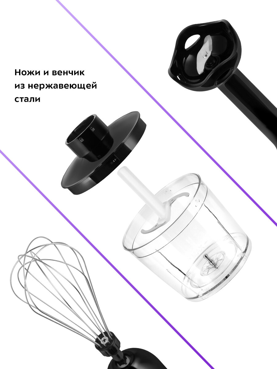 - Скольжение ручки: резиновые вставки на корпусе обеспечивают надёжный хват даже при работе с маслянистыми ингредиентами.