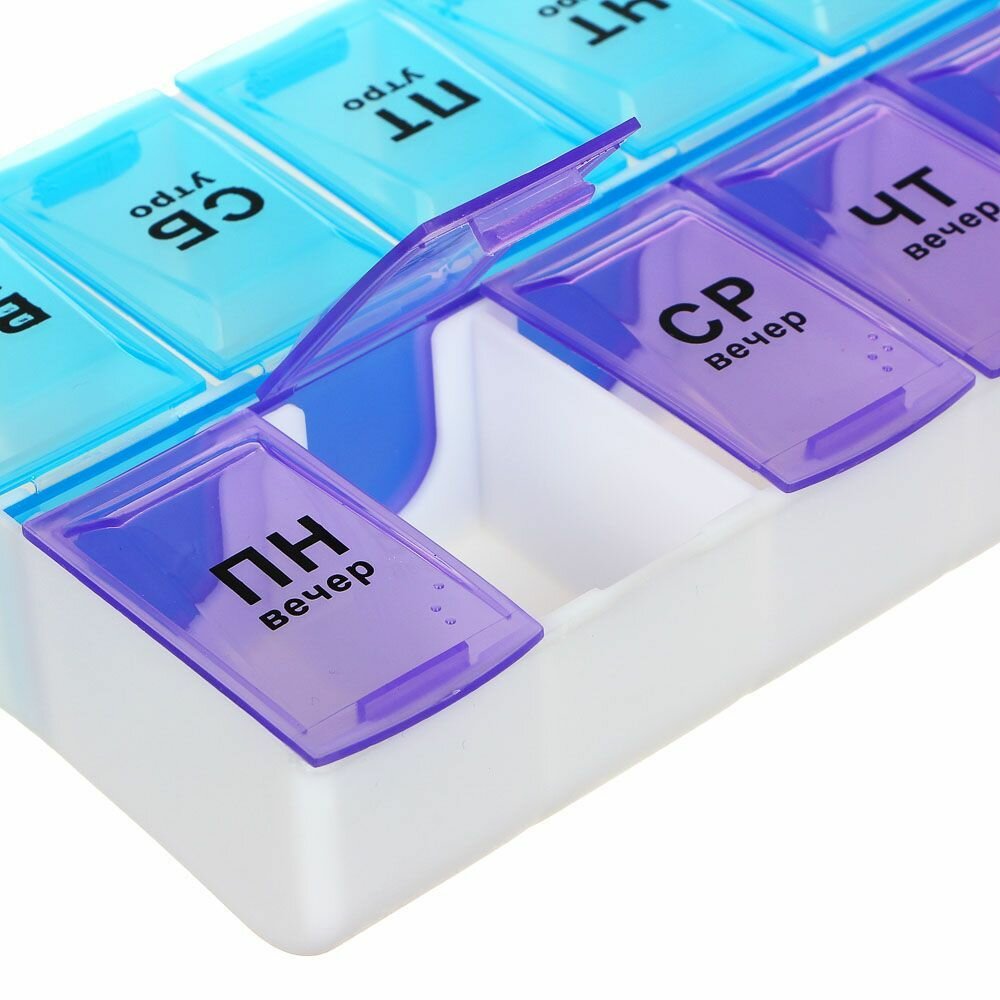 Вместимость на 40% выше, чем в стандартных 7-секционных версиях, при сохранении габаритов 185×90×28 мм. Сравнительные тесты с аналогами Apteka.ru показали: