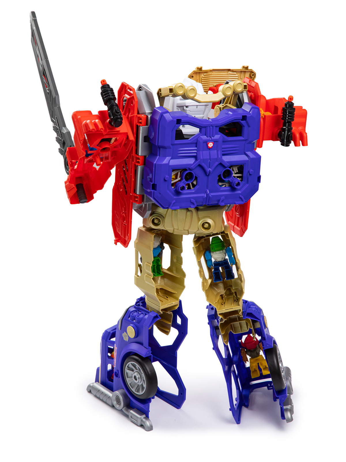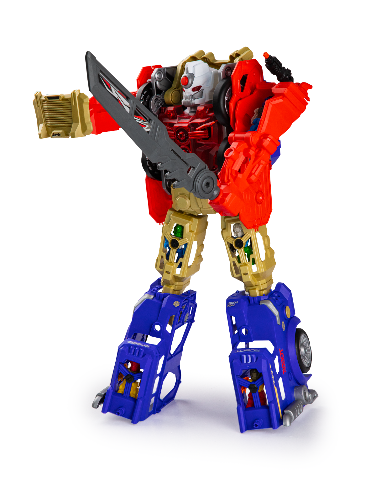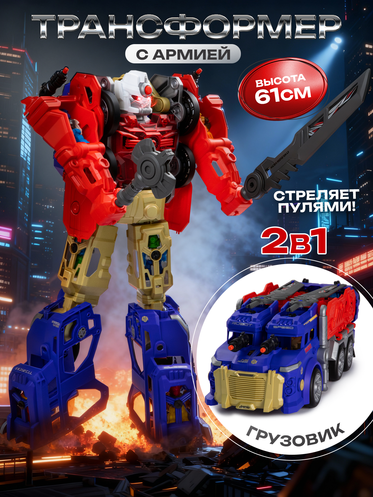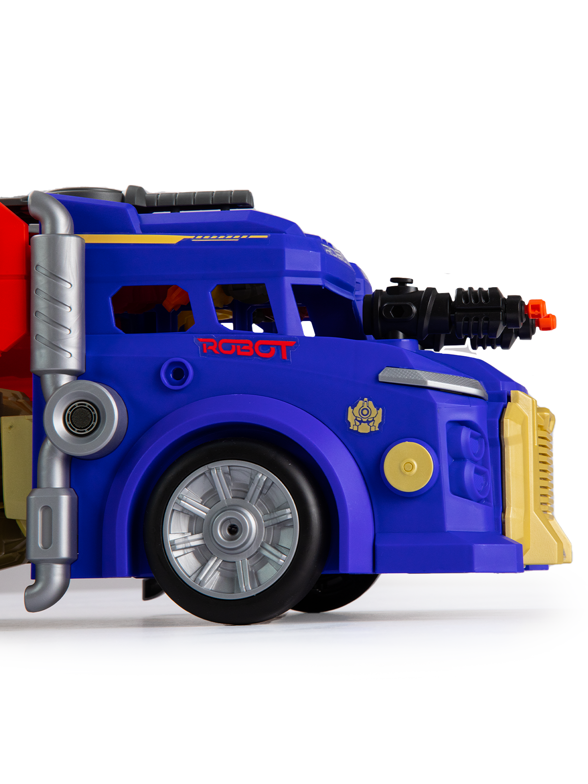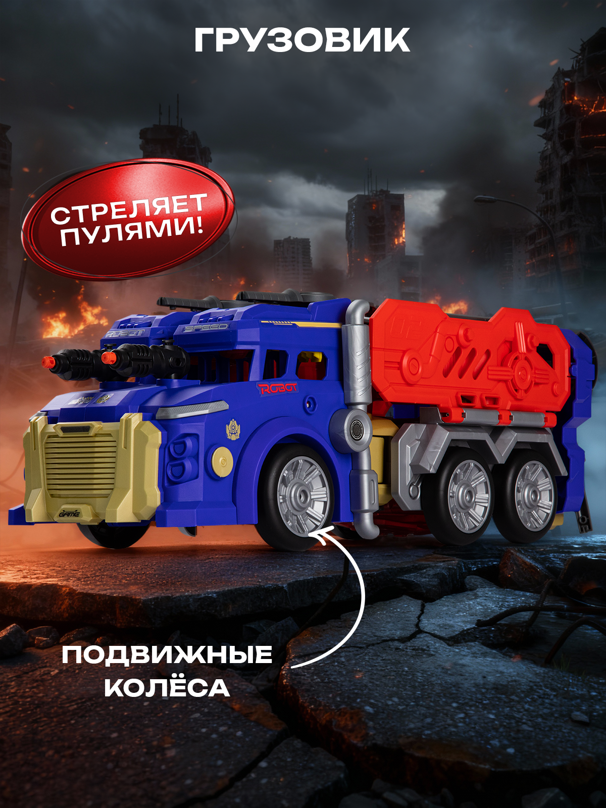- Двухэтапная трансформация грузовик ➔ робот за 3 действия: поворот кабины, выдвижение конечностей, фиксация шарниров