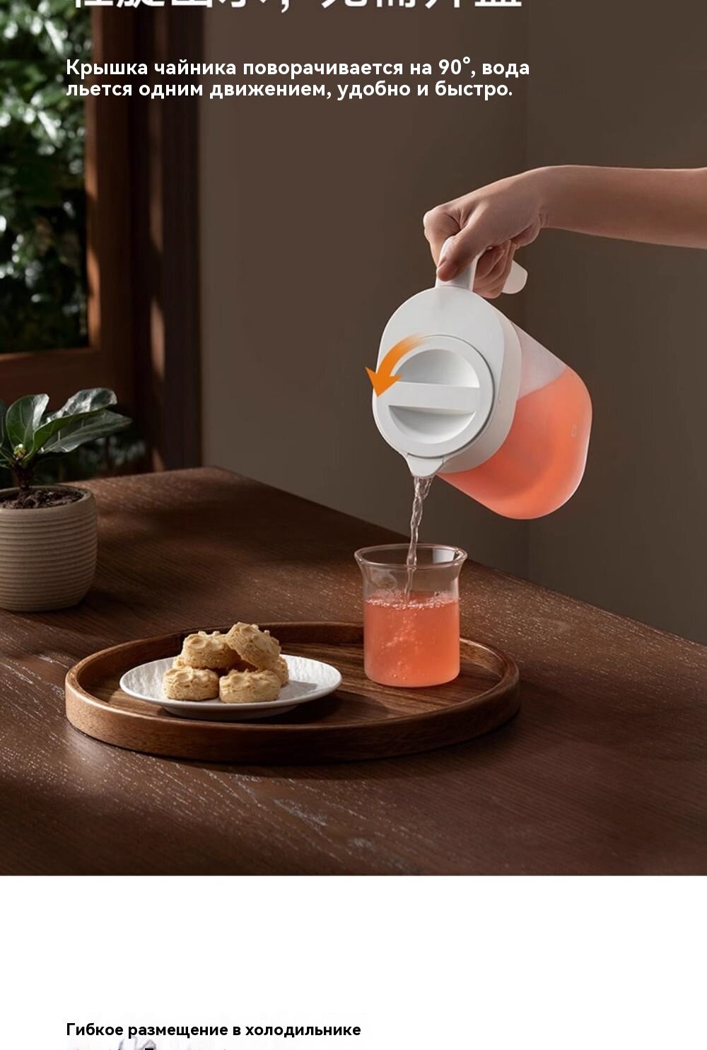 Пластик сохраняет эластичность до -25°C, что позволяет хранить заполненный кувшин в морозильной камере для приготовления льда без деформации корпуса.