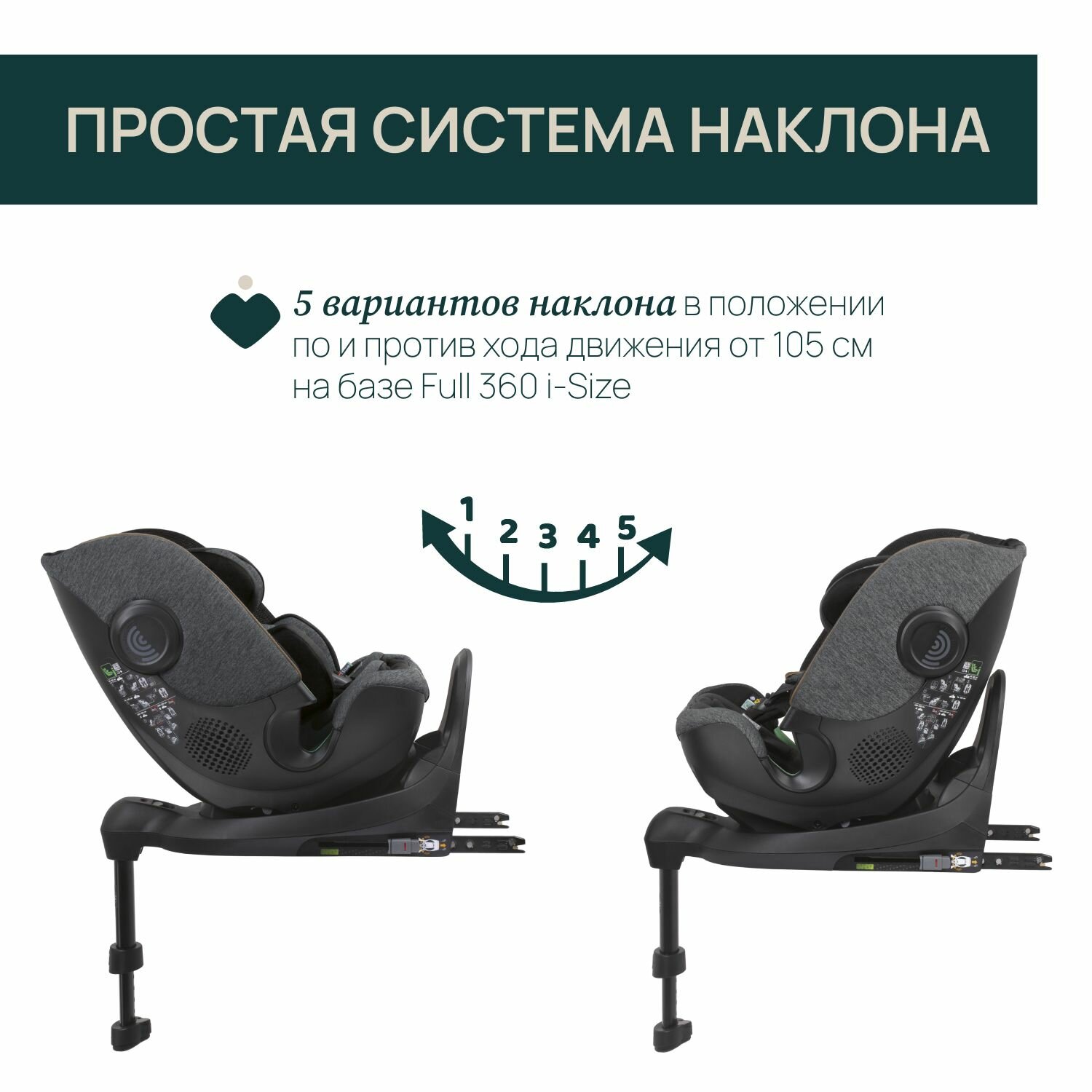 12-позиционная регулировка подголовника поддерживает голову при резких торможениях. Новорожденные размещаются в полностью горизонтальном положении благодаря съемному вкладышу Body Support. Переход на вертикальный режим осуществляется без дополнительных аксессуаров — достаточно переставить внутренние ремни в верхние крепления.