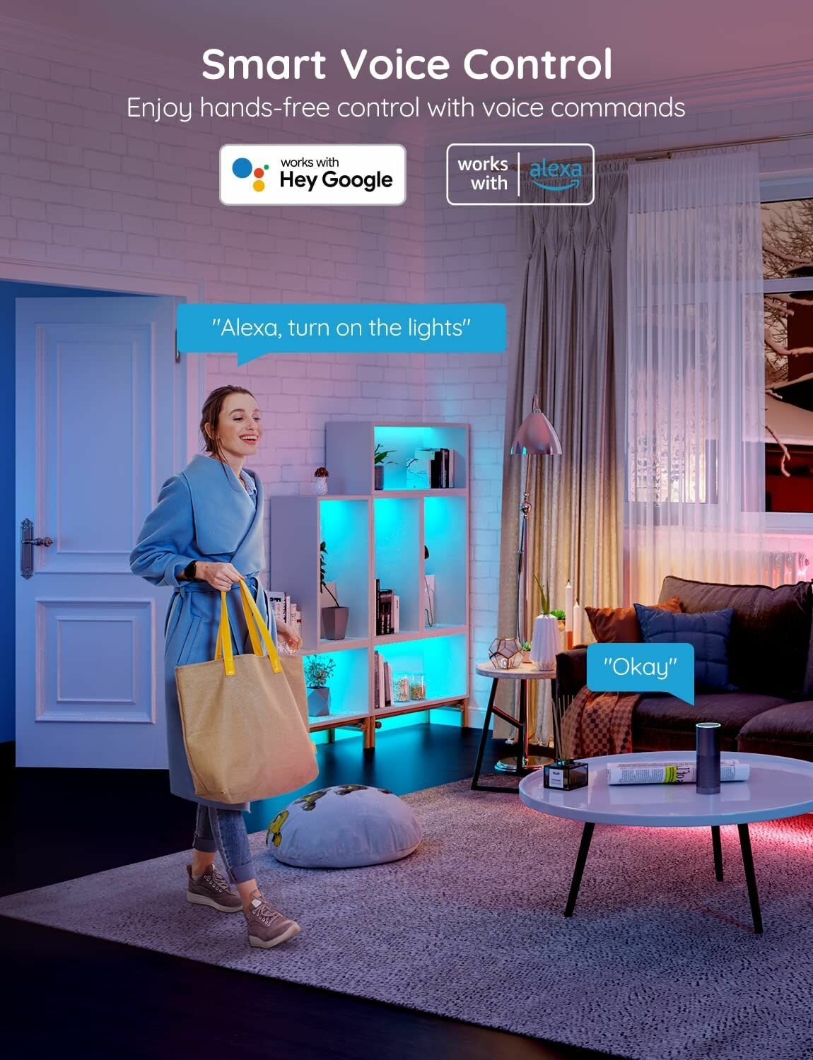 Светодиодная гибкая лента Govee H615A3A3 премиум-класса создаёт безупречную RGB-подсветку для интерьеров. Технология COB-LED обеспечивает равномерное свечение без точек благодаря высокой плотности 60 светодиодов на метр.