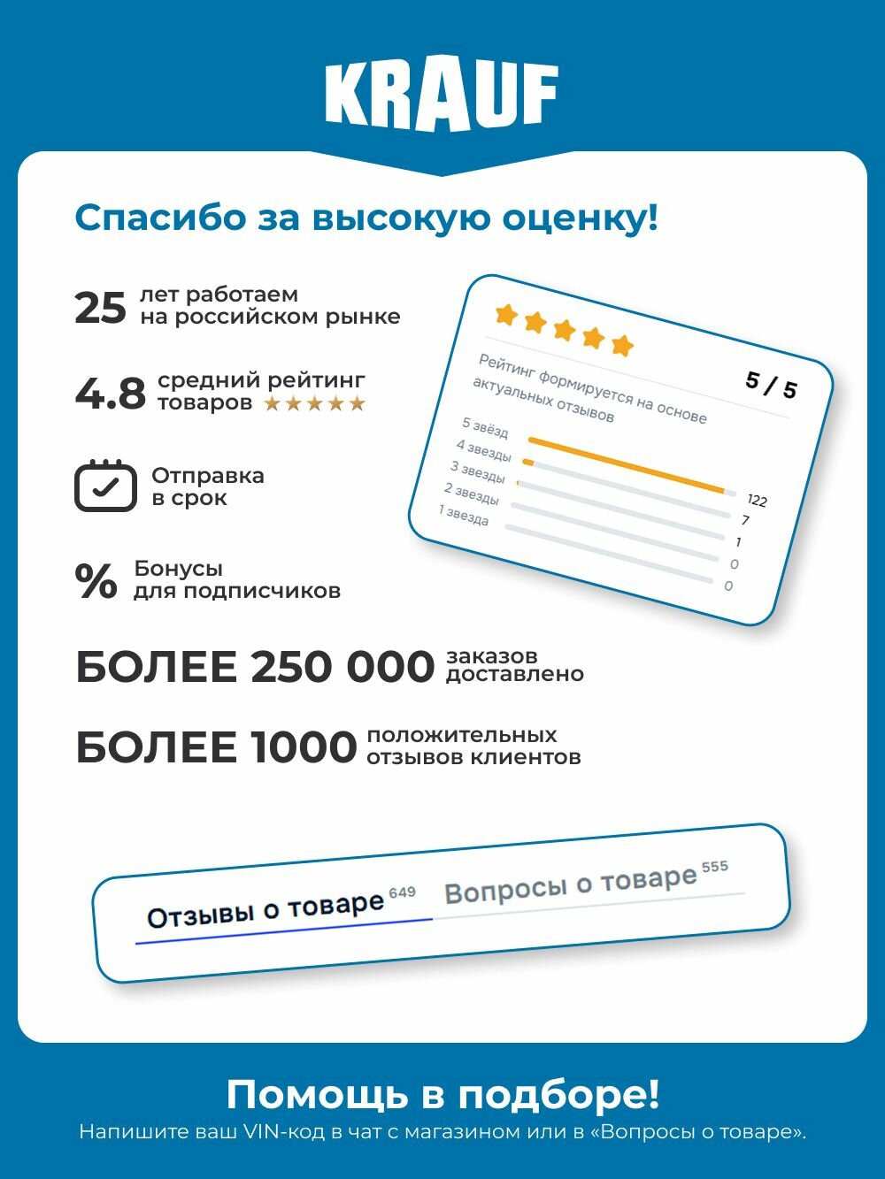 При покупке вы получаете чек с привязкой к VIN автомобиля, что упрощает гарантийное обслуживание.
