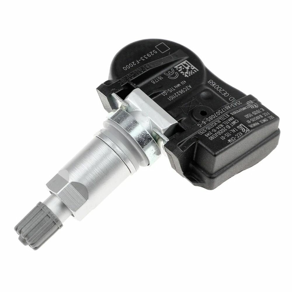 Датчик TPMS 52933-F2000 разработан для моделей Hyundai I30 (2012-2021), Elantra (2013-2023) и Venue (2020-2024). Компонент использует RF-сигнал 433 МГц, соответствующий протоколам передачи данных Hyundai Mobis. Диапазон измерений охватывает от 0 до 6 бар с температурной компенсацией в пределах -40°C до +125°C.