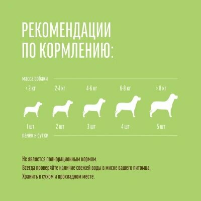 Для собак весом менее 5кг оптимальная дневная норма - 5-6 кусочков: