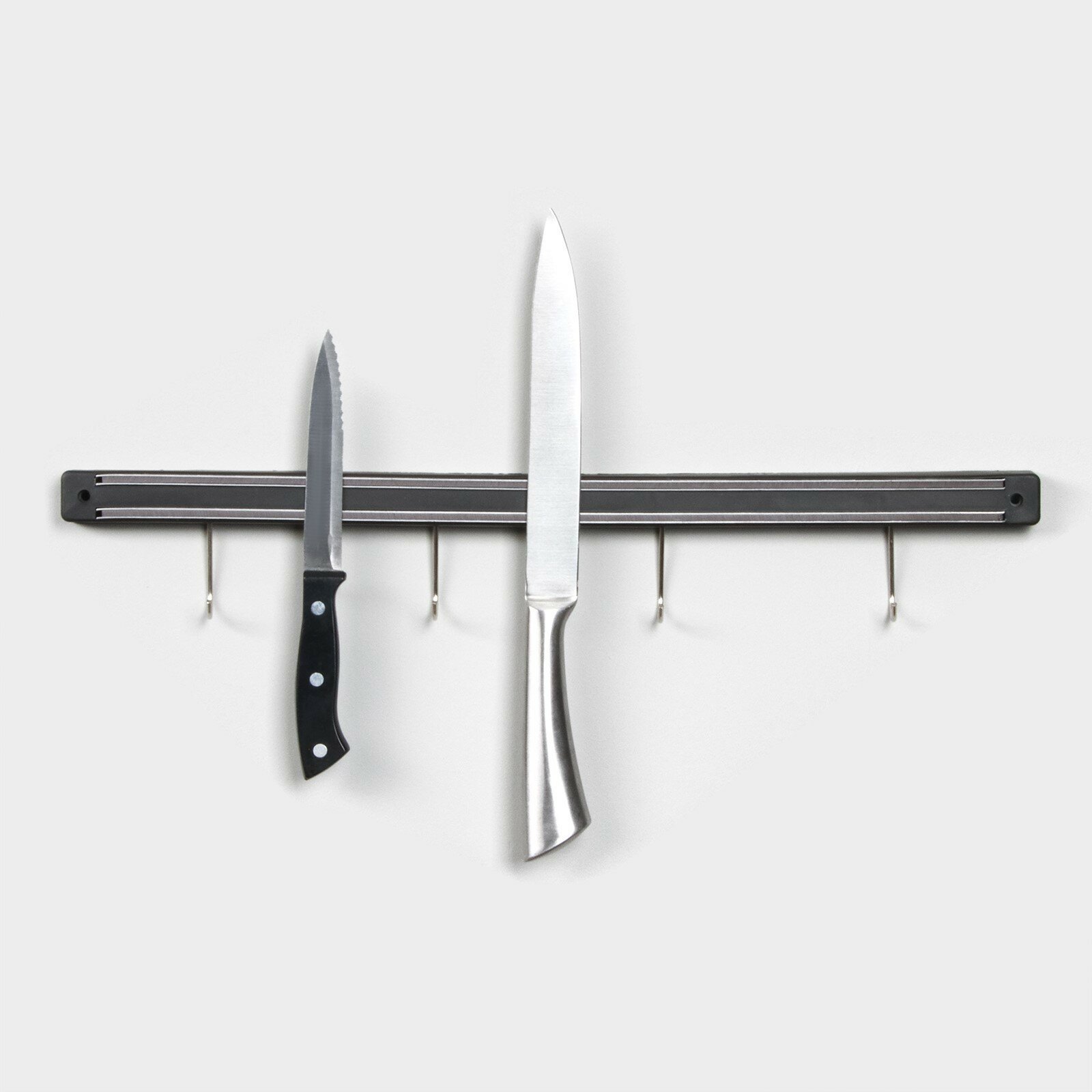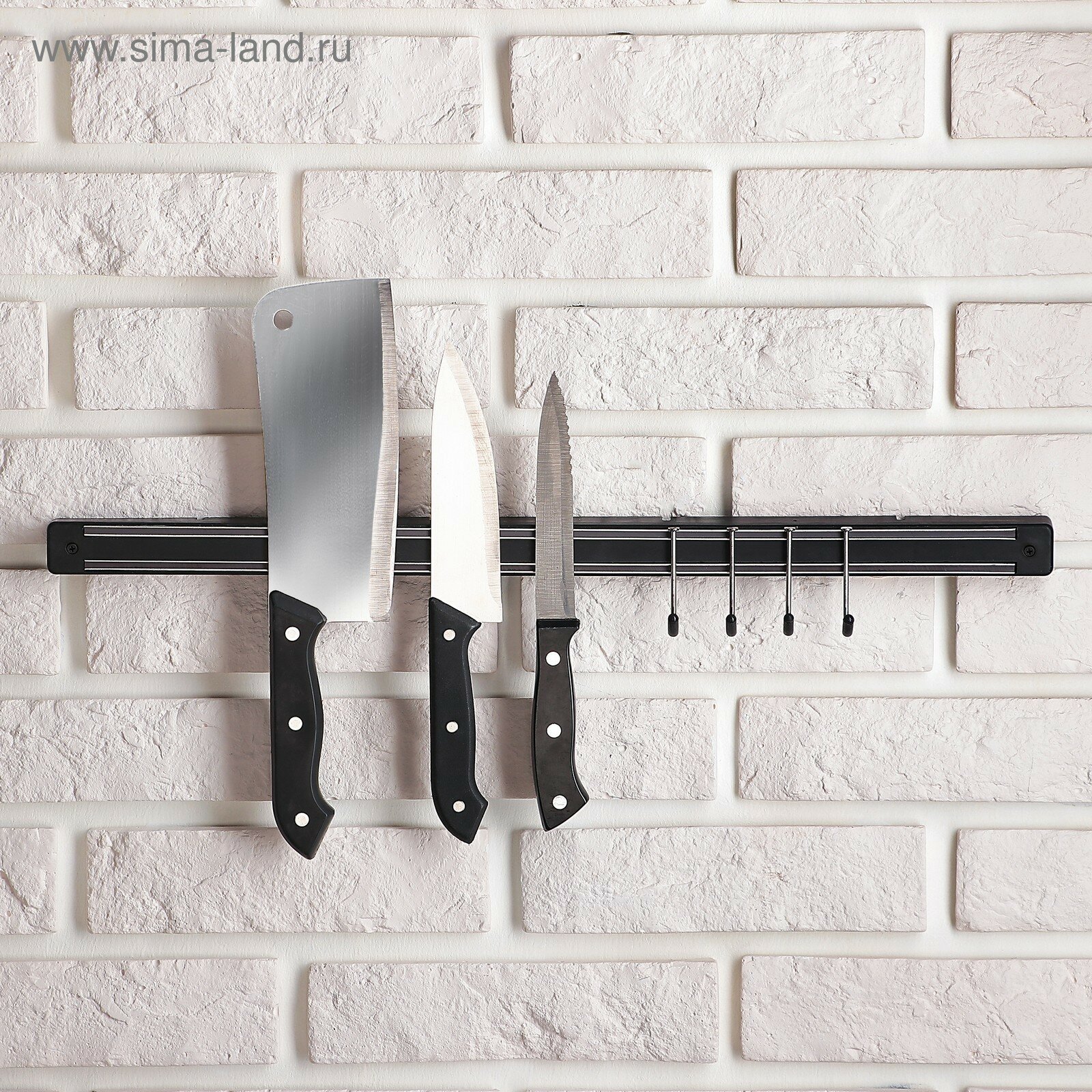 Магнитный держатель Доляна «Линия» изготовлен из нержавеющей стали с антикоррозийным покрытием, предотвращающим появление ржавчины даже при постоянном контакте с водой. Ширина рабочей поверхности 51 см позволяет хранить до 5 кухонных ножей одновременно, включая модели с толщиной лезвия до 3 мм. Магнитные элементы класса N52 обеспечивают силу сцепления 8 кг на точку — этого достаточно для профессиональных ножей весом до 450 г.