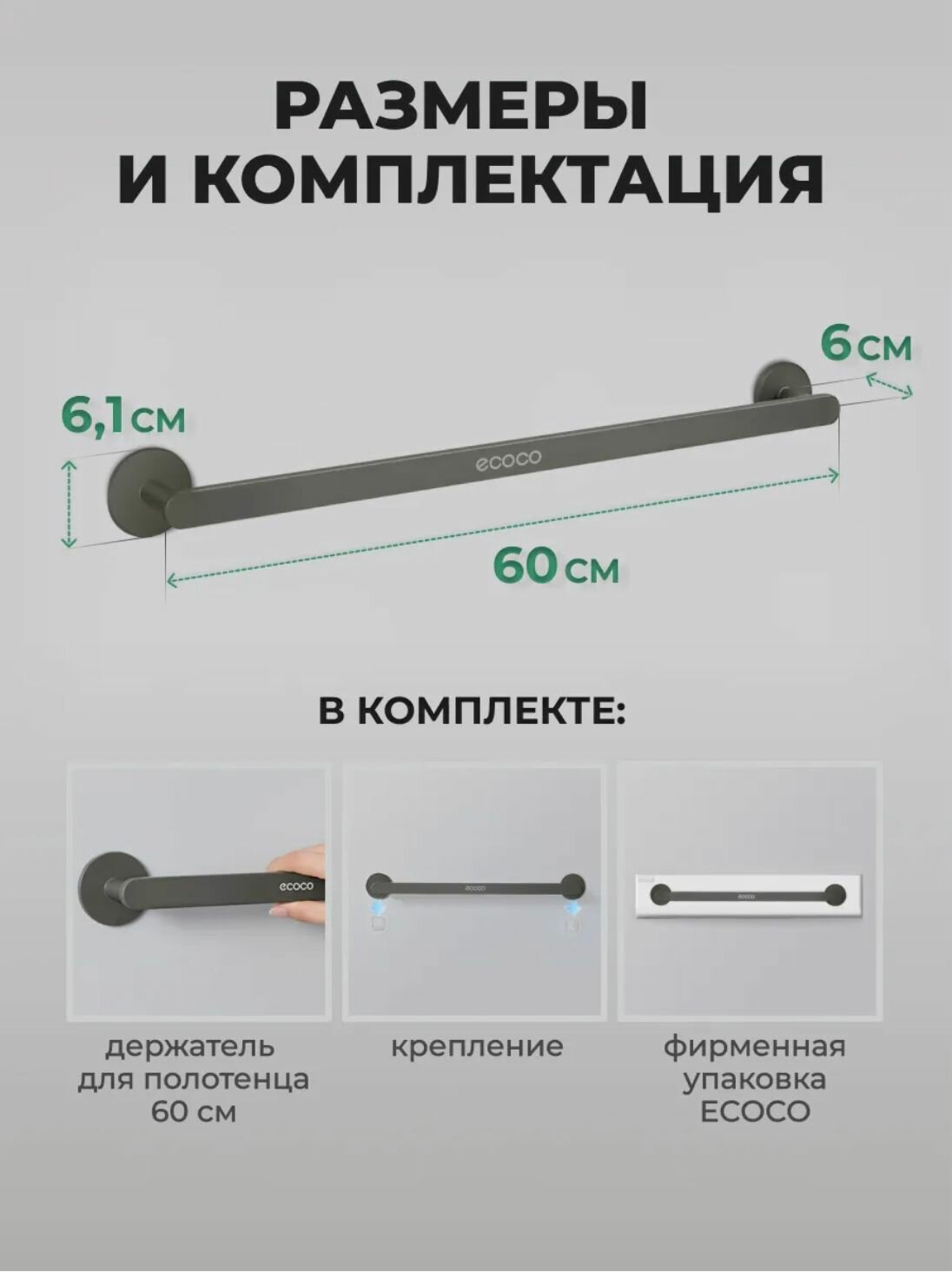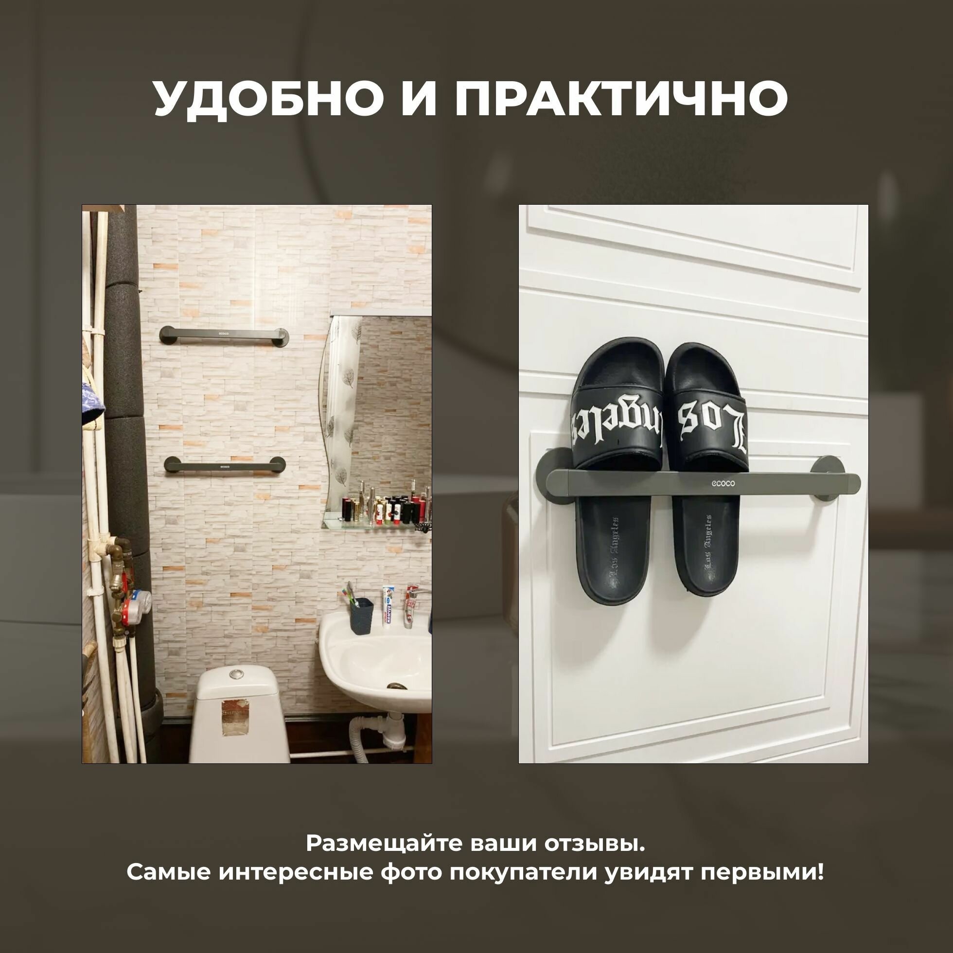 Клеевая основа промышленного типа позволяет крепить держатель для полотенец Ecoco на любые гладкие поверхности без сверления. Состав клея прошел тест в лаборатории Henkel — выдерживает до 3 кг нагрузки при влажности 95%.
