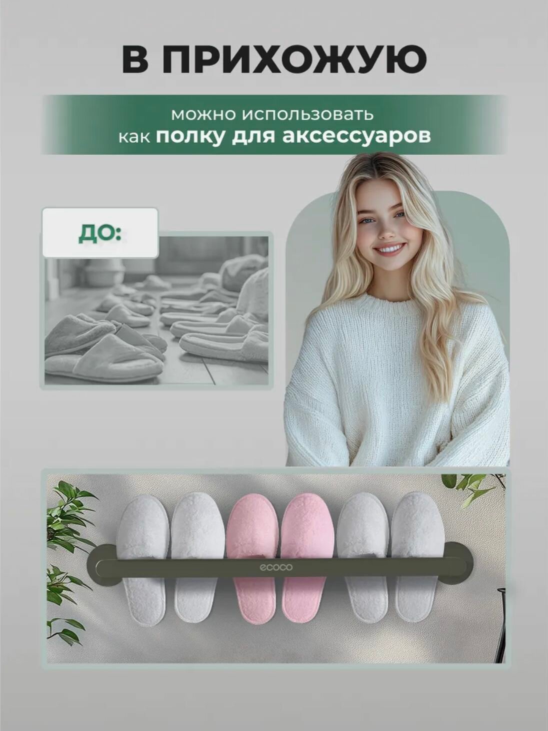 - Длина 40 см оптимальна для стандартных банных полотенец (50х90 см) и бумажных рулонов