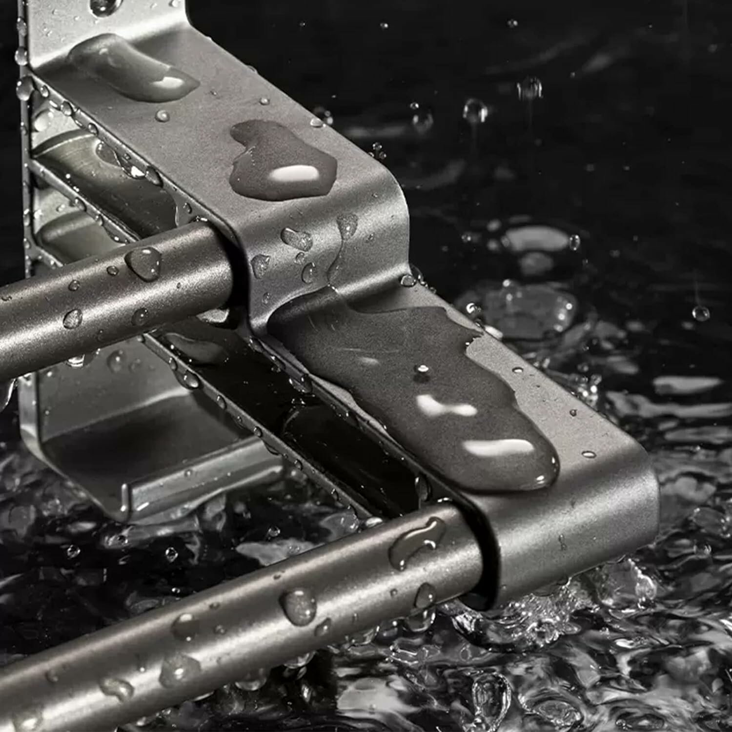 Самоклеящаяся вешалка с опорой на алюминиево-металлический сплав разработана специально для эксплуатации в условиях повышенной влажности. Антикоррозийное покрытие защищает металл от появления ржавчины при контакте с водой - что подтверждают независимые тесты в солевой камере (ASTM B117).