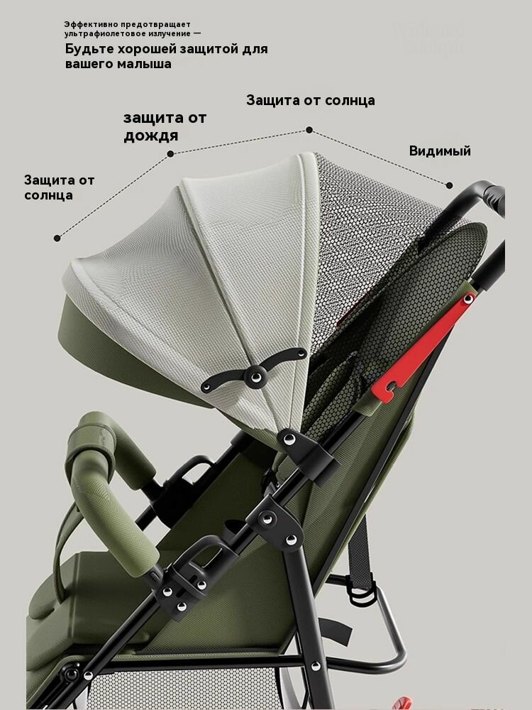 Базовый набор включает: москитную сетку, дождевик и чехол для хранения. В премиальную комплектацию входят: конверт-трансформер (до -15°C), солнцезащитный козырек SPF 50+ и накладка на ручку из экокожи.